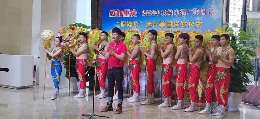 8月29日,感知重庆·2022中秋城市推广美国行——“铜梁龙”远行美国送龙仪式在重庆铜梁区规划展览馆举行。