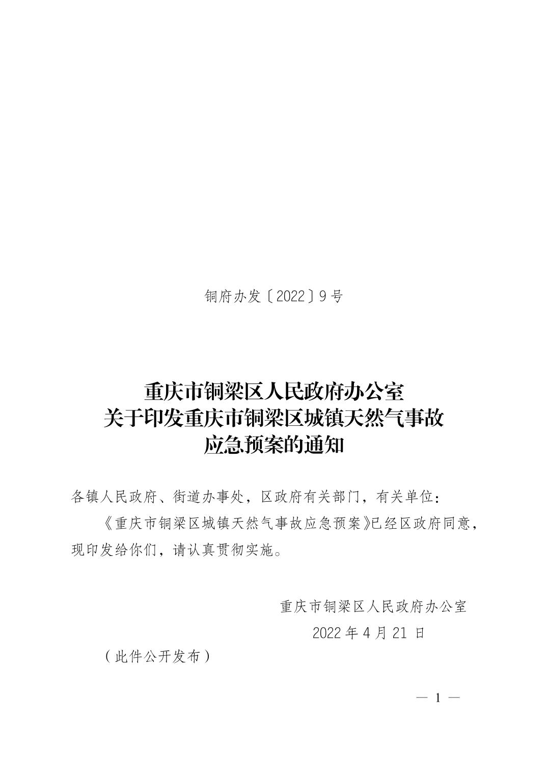 重庆市铜梁区人民政府办公室关于印发重庆市铜梁区城镇天然气事故应急预案的通知