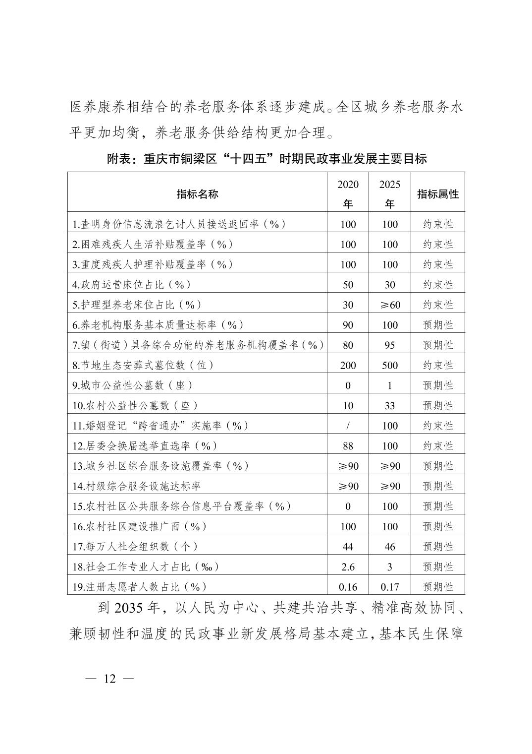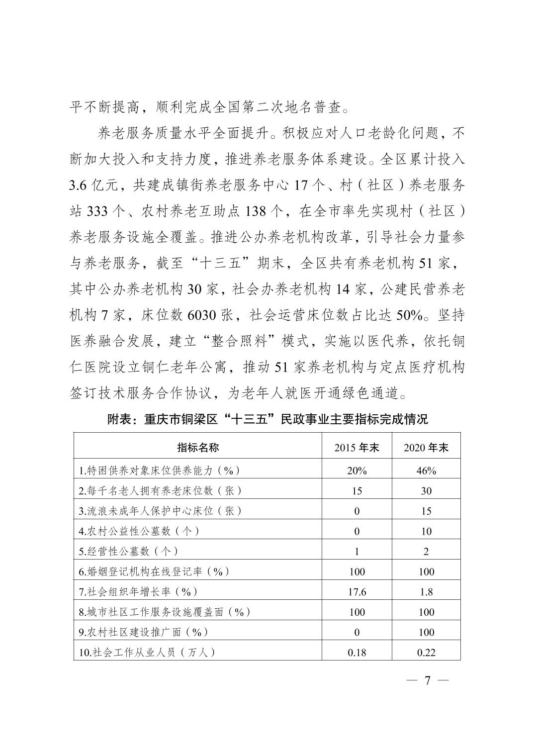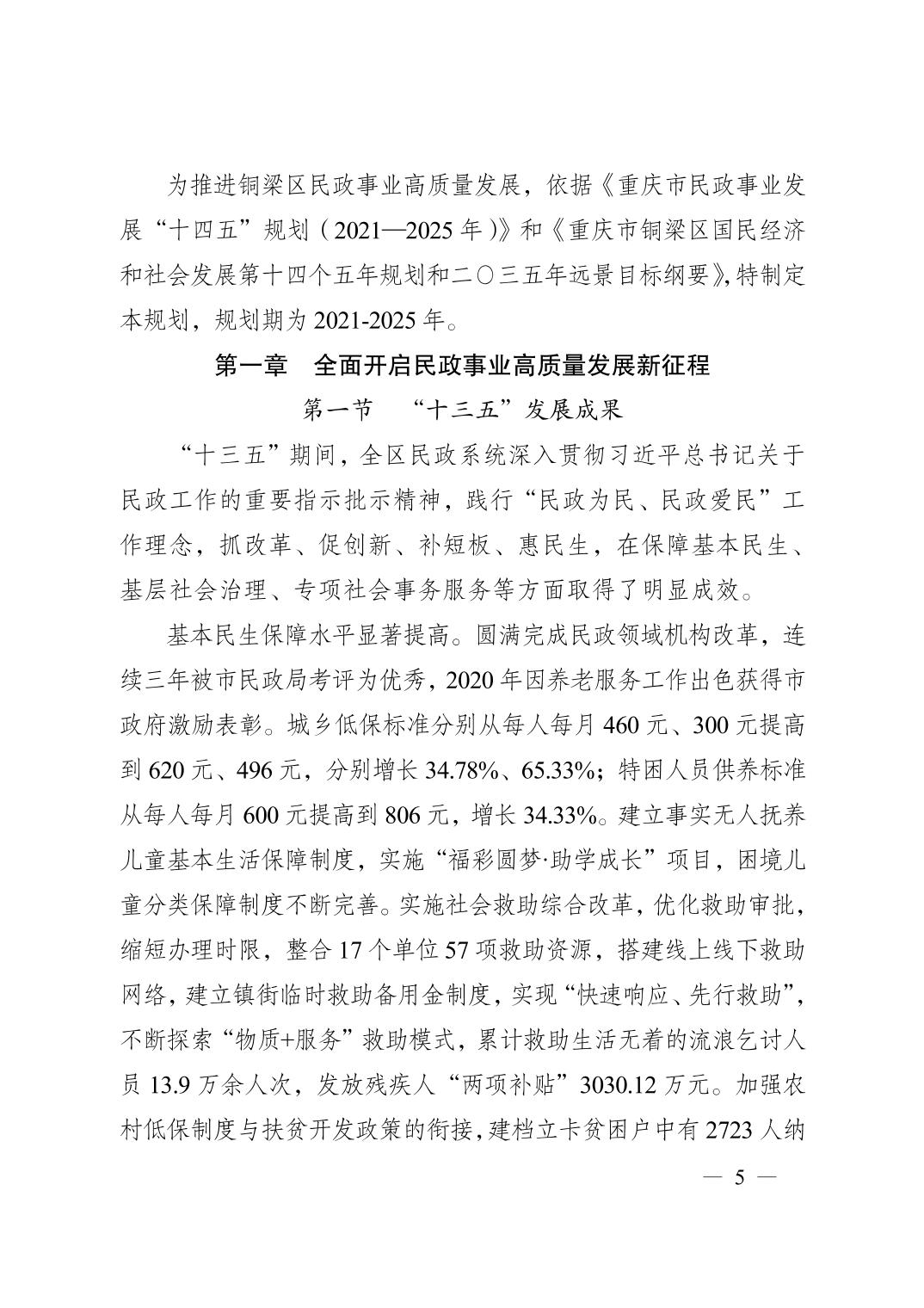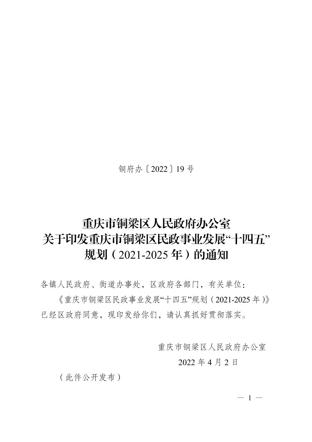重庆市铜梁区人民政府办公室关于印发重庆市铜梁区民政事业发展“十四五”规划(2021-2025年)的通知