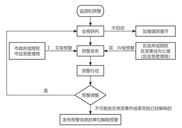 Ⅰ级或Ⅱ级预警由市应急管理局组织有关部门和机构、专业技术人员及专家进行会商研判,预估可能的影响范围和危害程度,向市政府提出预警级别建议。Ⅰ级或Ⅱ级预警信息由市政府或授权市应急管理局发布。