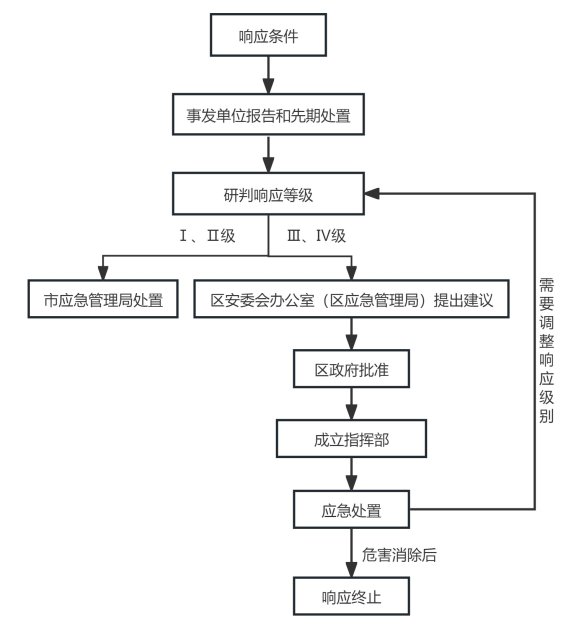 区安委会办公室(区应急管理局)组织有关部门(单位)会商后提出启动应急响应建议,报区政府批准启动应急响应。 | ||