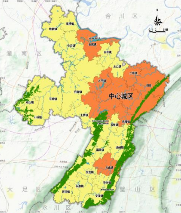 建立“两屏三片五带多点”生态安全格局。坚持尊重自然、顺应自然、保护自然,以国土“三调”为基础,着力构建“两屏三片五带多点”复合型、立体化、网络化的总体安全生态格局,保护成渝地区双城经济区中部生态屏障。“两屏”即巴岳山、毓青山生态屏障,重点发挥水土保持、水源涵养和生物多样性功能,保护峰、崖、洞、瀑布等特色景观,坚持“面上保护、点上开发”原则,加强自然保护地保护及建设管控,适当发展山地生态观光。“三片”即仙隐山水土保持生态功能区、北部丘陵水源涵养生态功能区、六赢山水土保持生态功能。“五带”即小安溪、淮远河、平滩河、琼江、涪江生态带。“多点”即小北海、玄天湖、同心桥水库、连片林草地等生态功能斑块及各类自然保护地,形成生态斑块,共同发挥水土保持、水源涵养、生物多样性保护等生态功能。