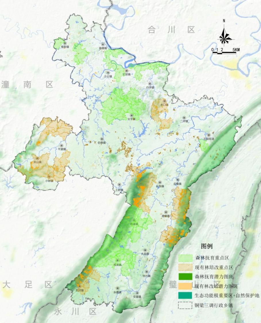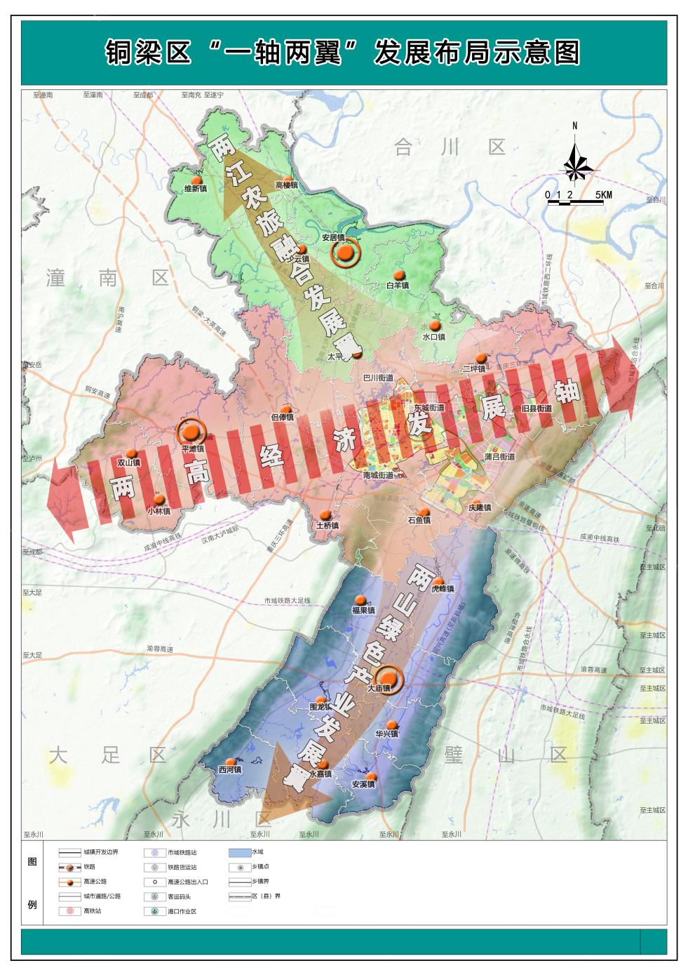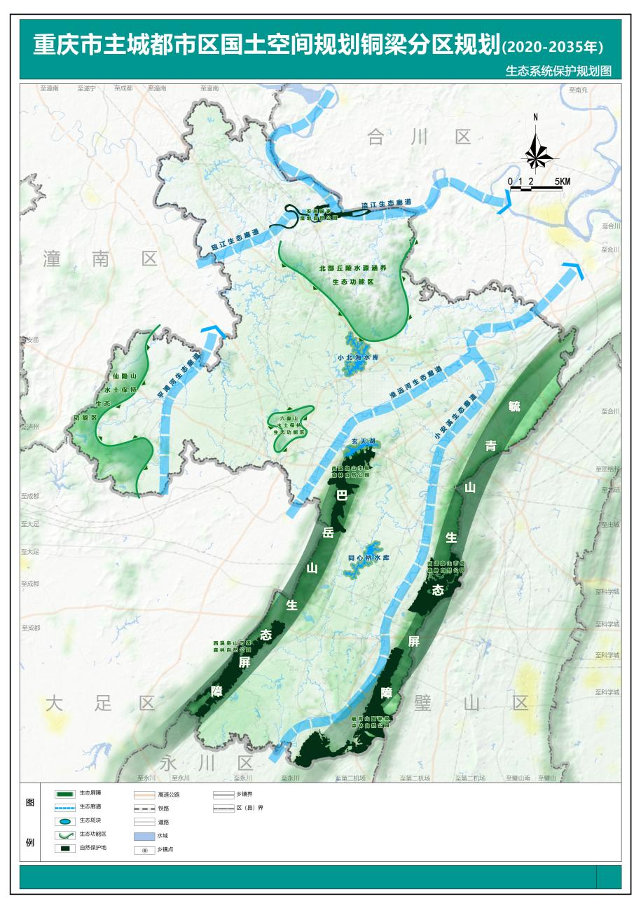 规划统筹引领发展作用明显增强。全区国土空间规划体系初步建立,形成《重庆市主城都市区国土空间规划铜梁分区规划(2021—2035年)》初步方案,为产业发展、重大基础设施、重大项目建设落实空间和资源保障。完成“桥头堡”专项规划编、淮远新区规划、科创新城重点片区规划及23个镇规划、266个村规划,实现镇村规划及各类专业专项规划全覆盖。严格落实“控规管指标、城市设计管形象”双控机制,优化城市发展主轴、高度、密度、色彩管控。积极选取高水平设计单位,规划建设了龙城天街商圈、淮远新区,原乡中央公园、望山公园、见水公园、玄天秀水生态画廊成为领略原乡风情、品味乡愁情怀的网红公园。龙城天街商圈展现现代化新城风貌,形成多元化、多层次商贸业态。