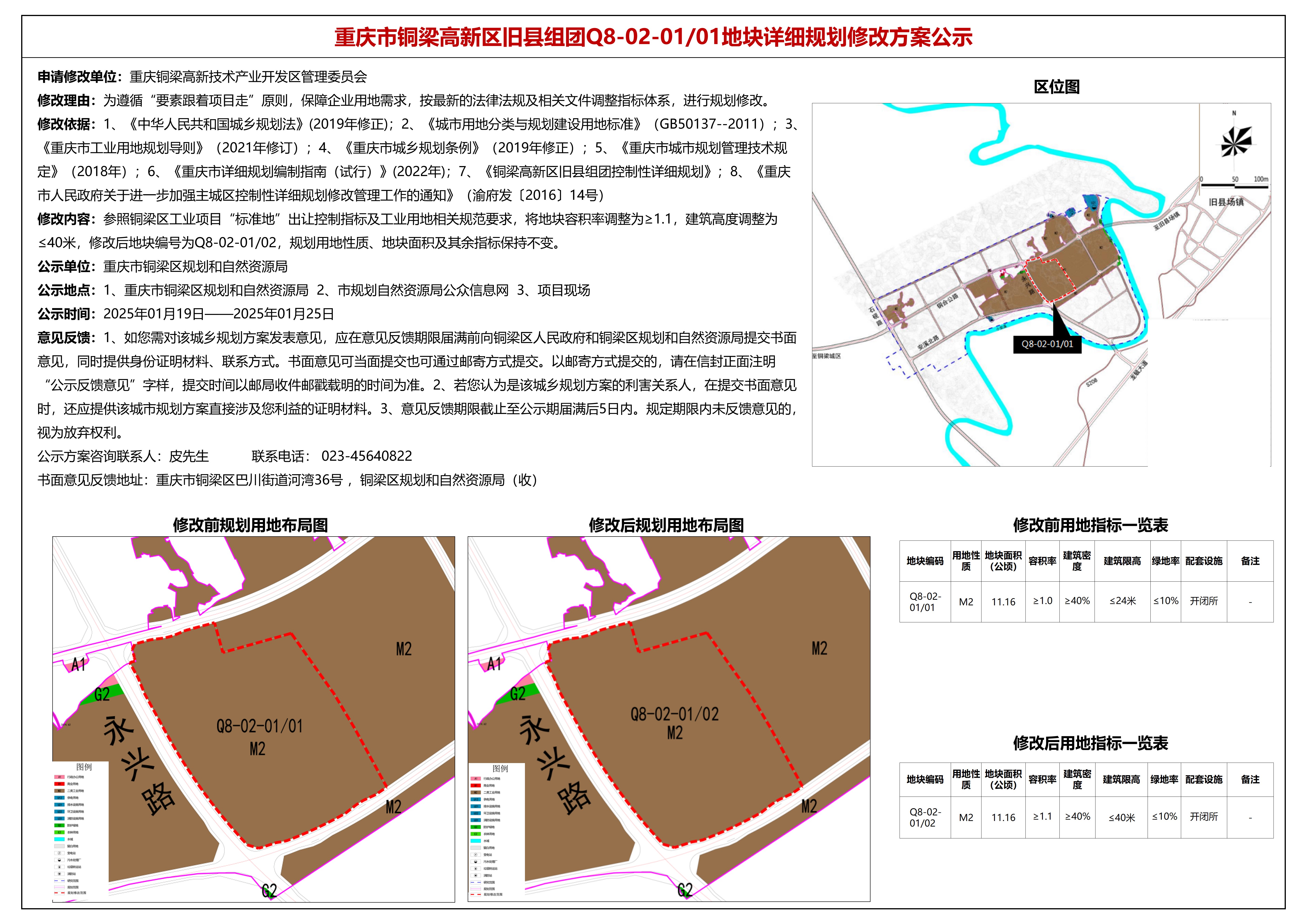 重庆市铜梁高新区旧县组团Q8-02-01/01地块详细规划修改方案公示