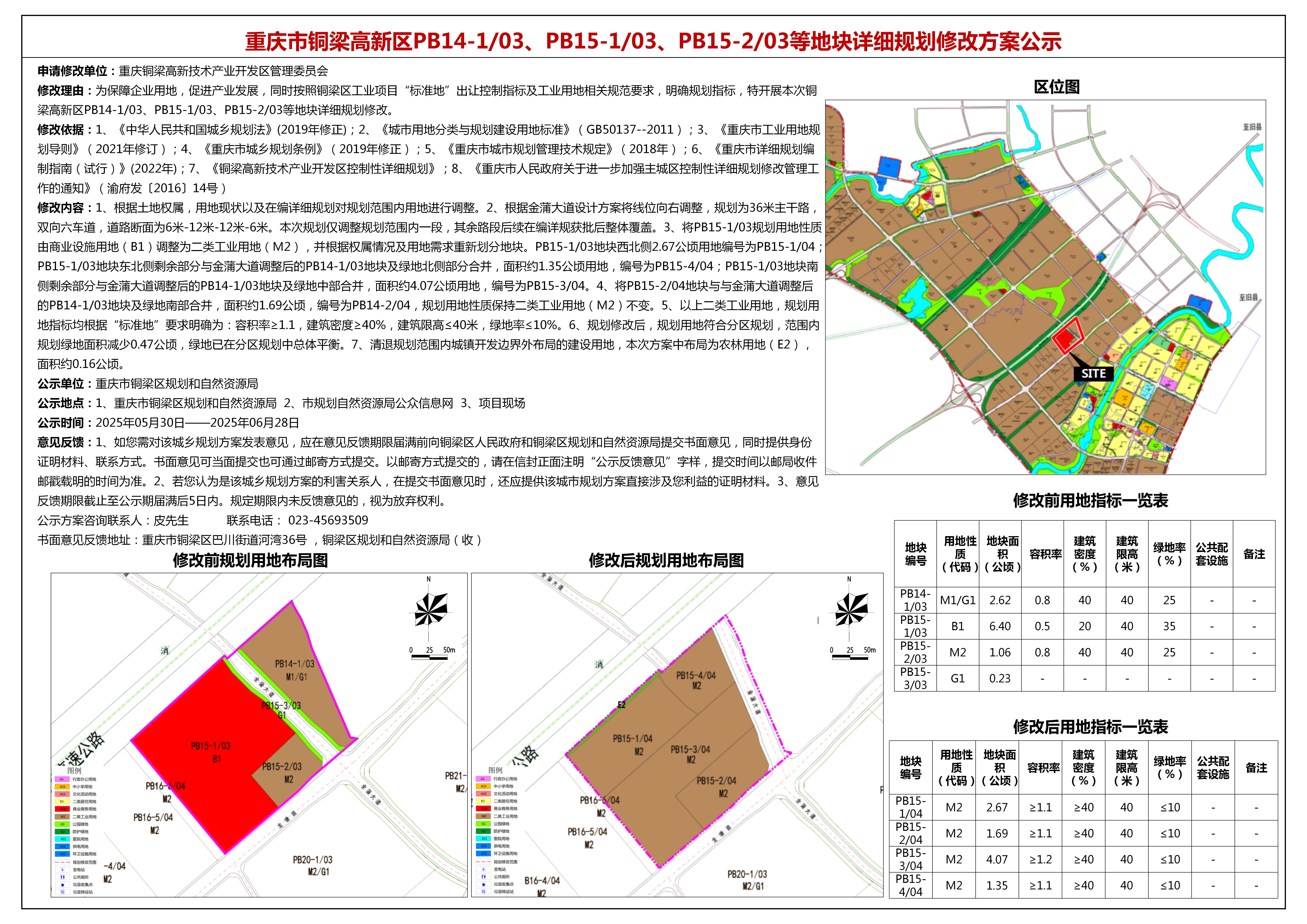 重庆市铜梁高新区PB14-1/03、PB15-1/03、PB15-2/03等地块详细规划修改方案公示