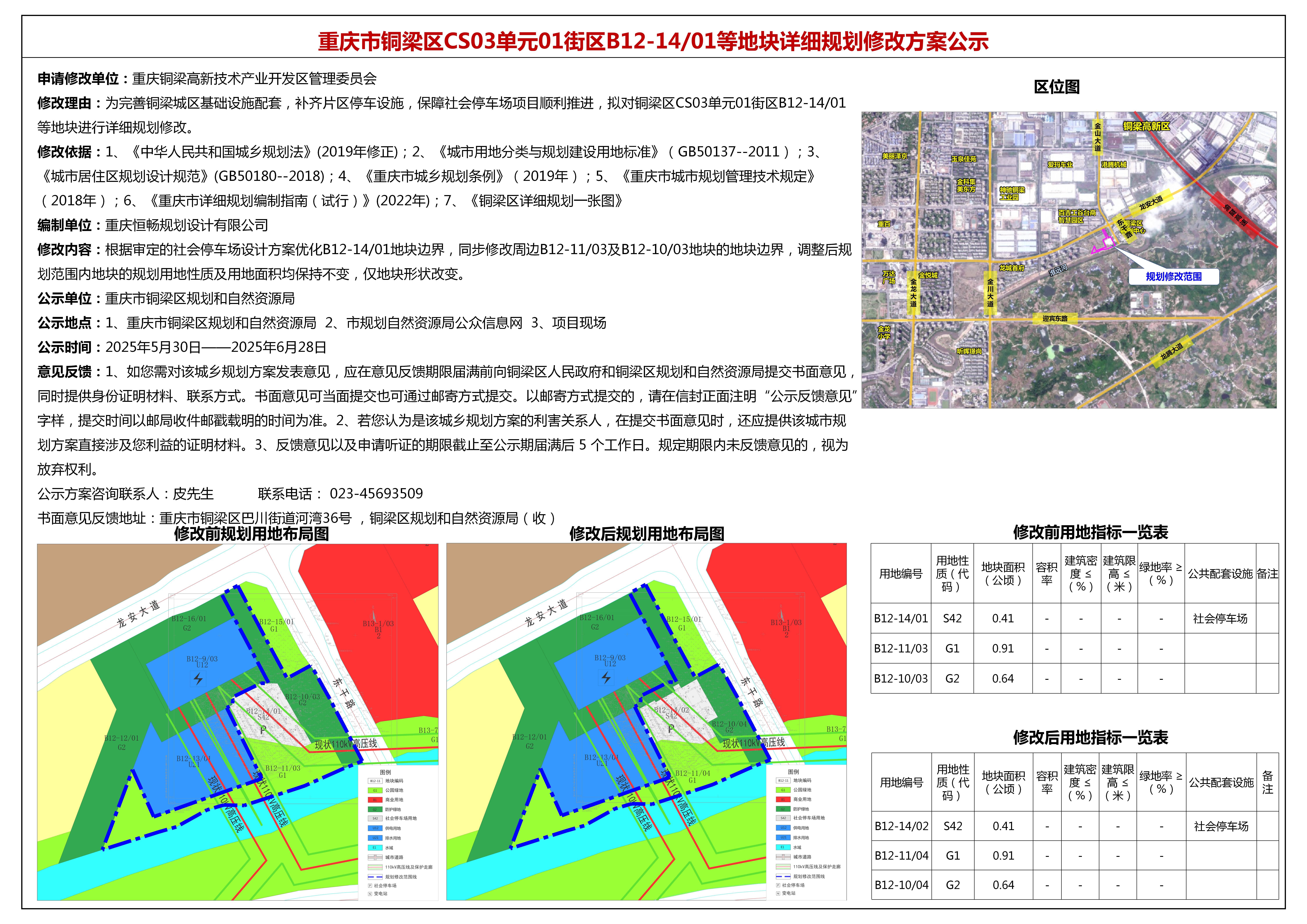 重庆市铜梁区CS03单元01街区B12-14/01等地块详细规划修改方案公示