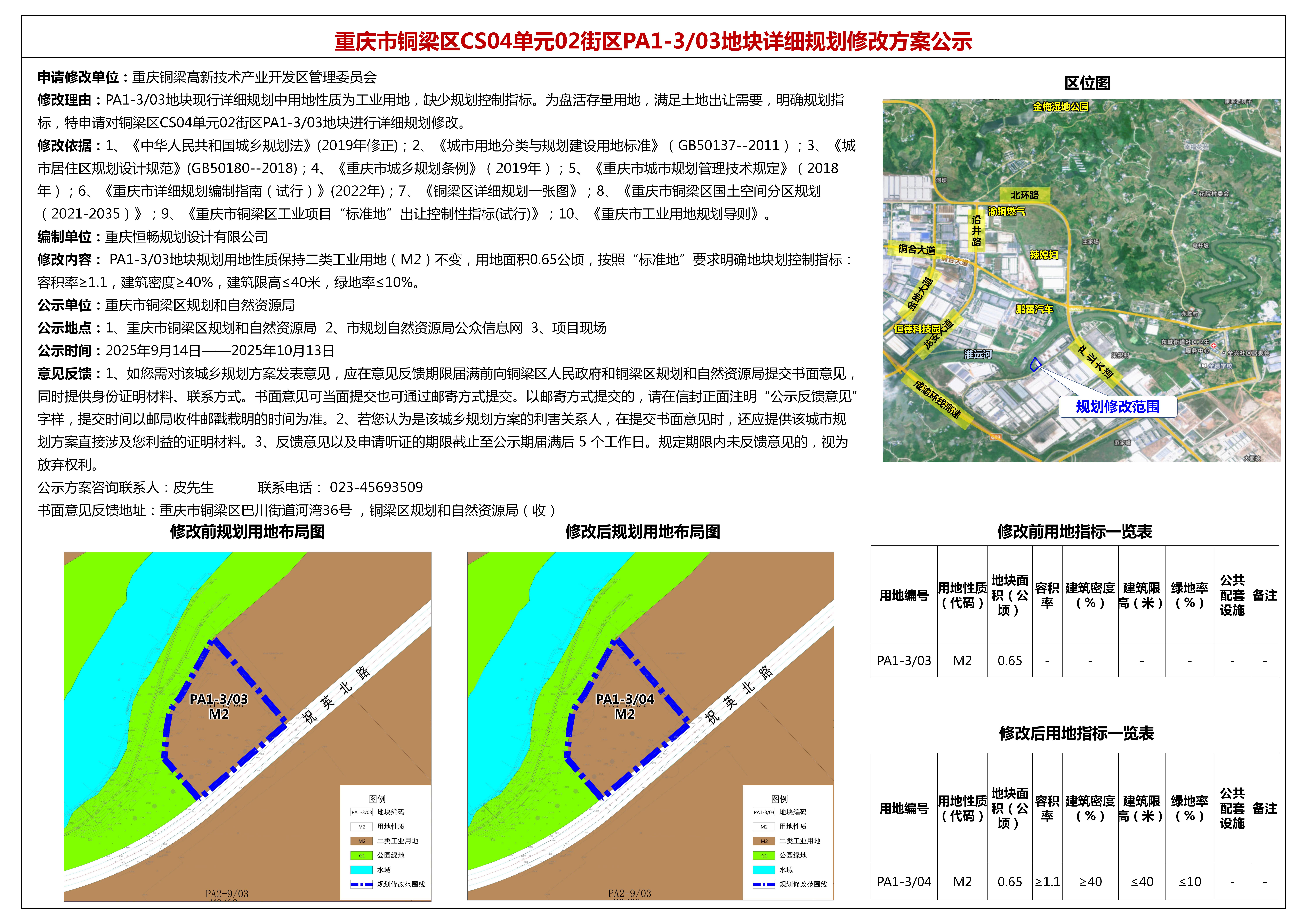 重庆市铜梁区CS04单元02街区PA1-3/03地块详细规划修改方案公示