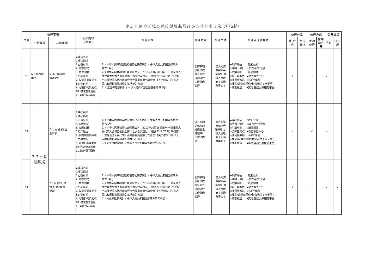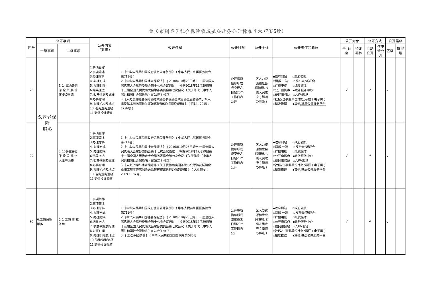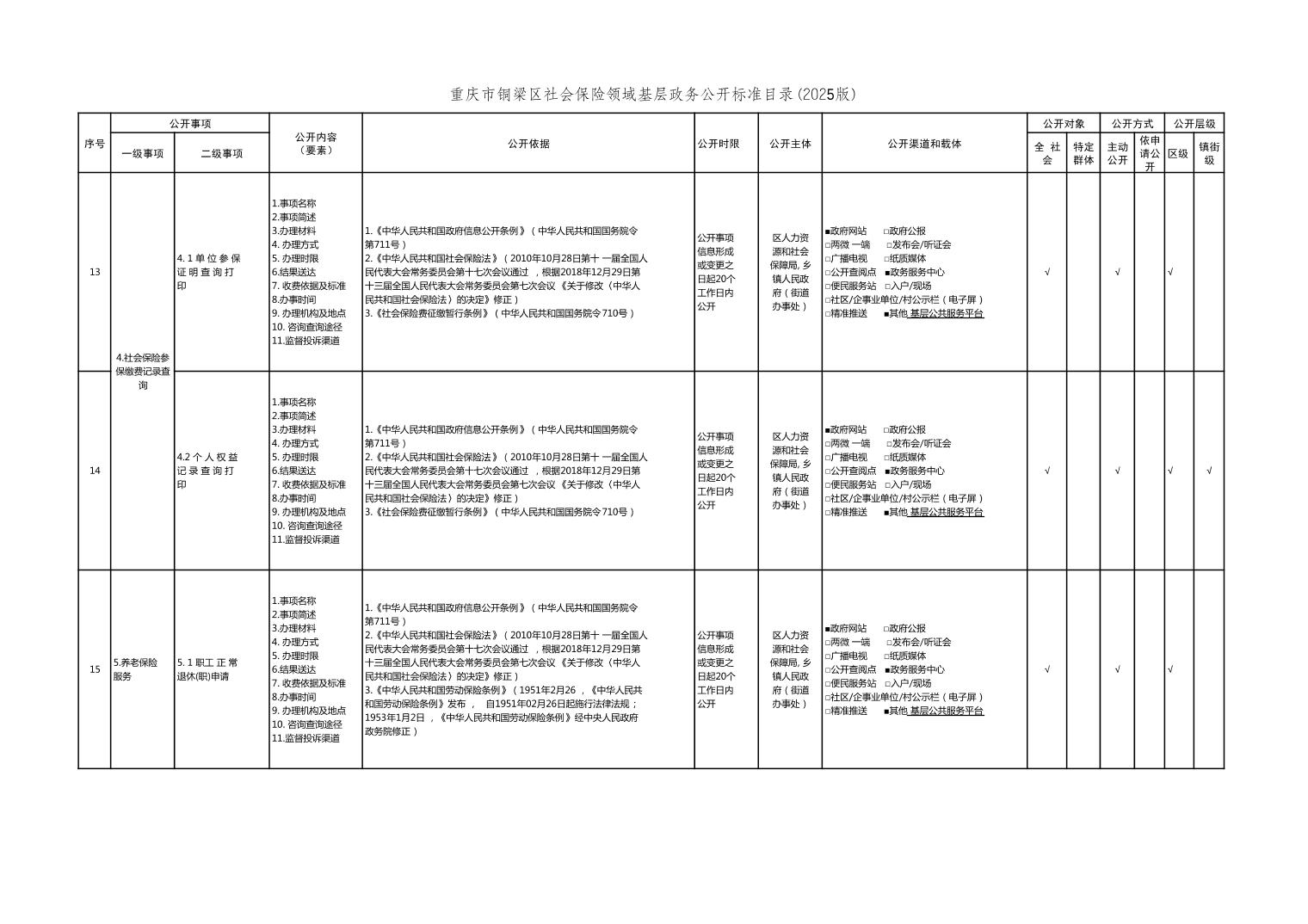 重庆市铜梁区社会保险领域基层政务公开标准目录(2025版)