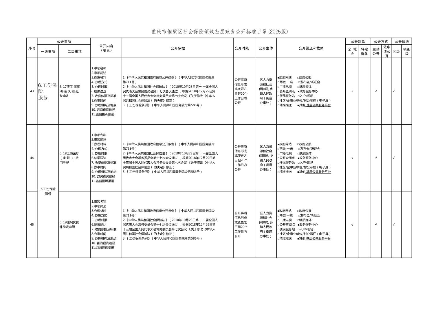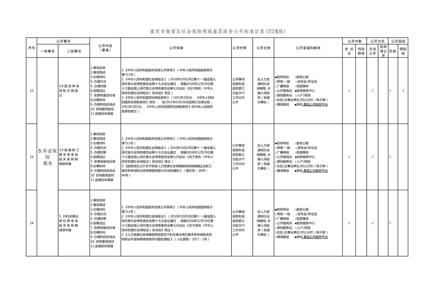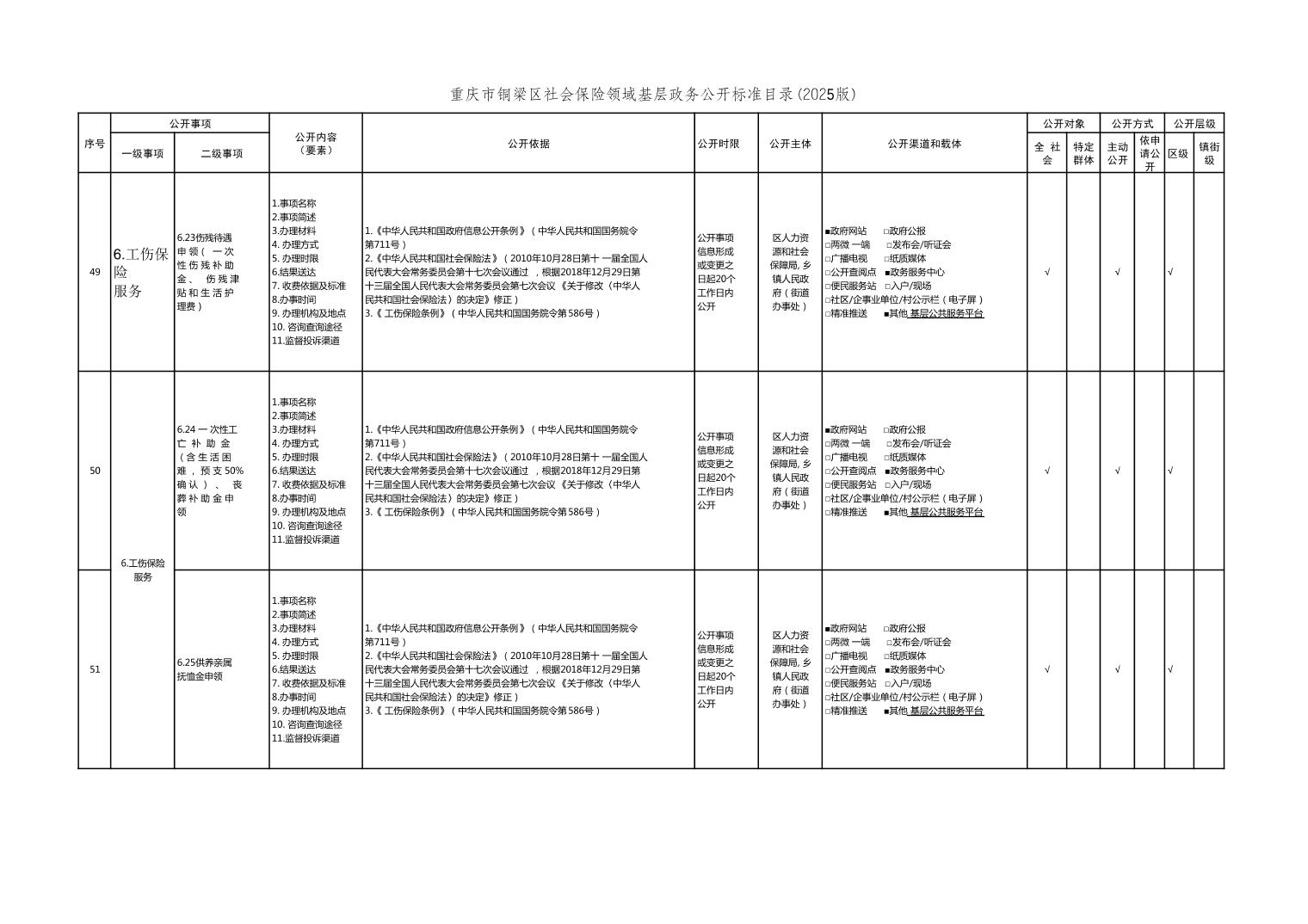 重庆市铜梁区社会保险领域基层政务公开标准目录(2025版)