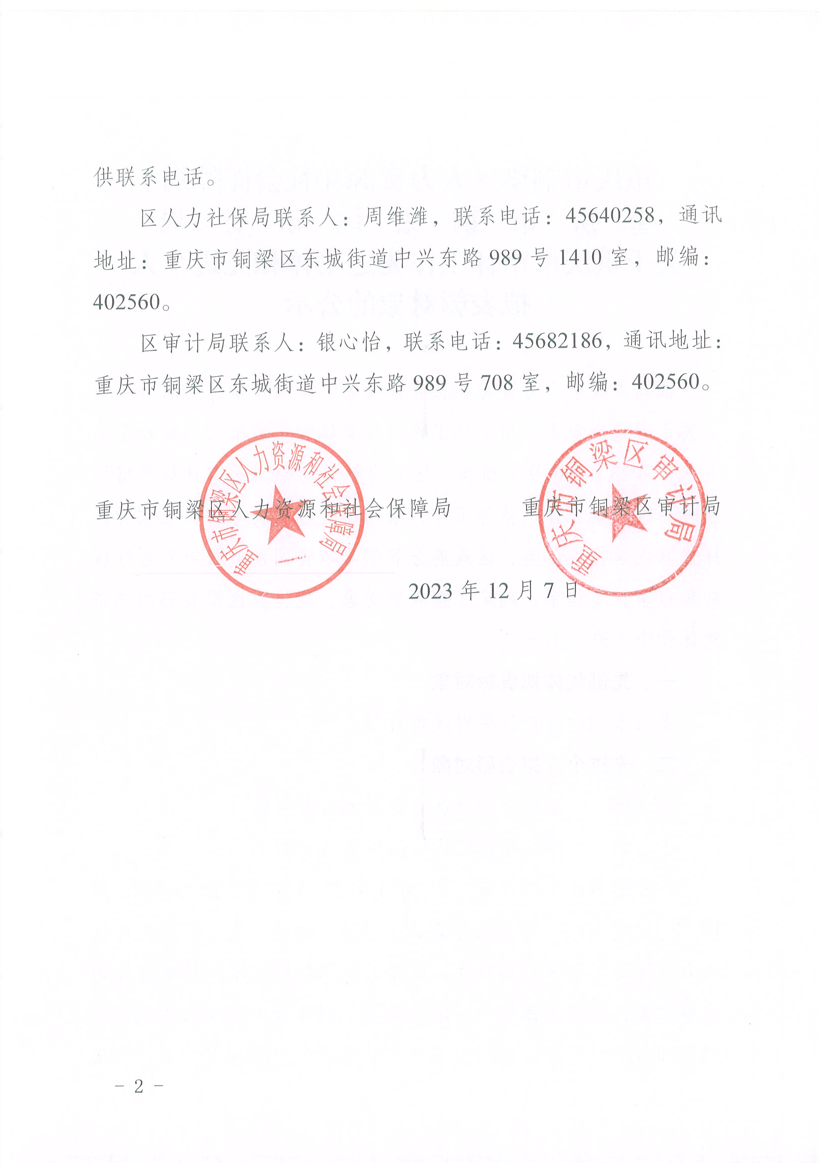 重庆市铜梁区人力资源和社会保障局 重庆市铜梁区审计局