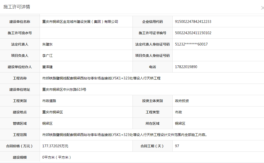 市郊铁路璧铜线配套铜梁西站与停车场连接线LYSK1+323处增设人行天桥工程施工许可