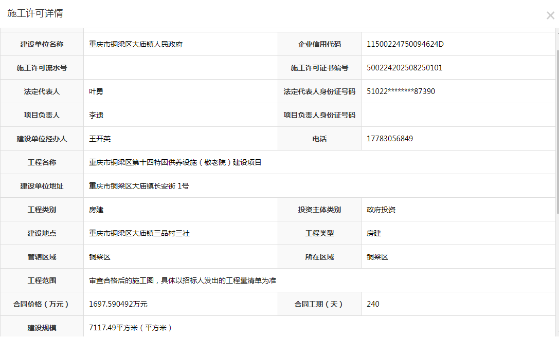 重庆市铜梁区第十四特困供养设施(敬老院)建设项目施工许可