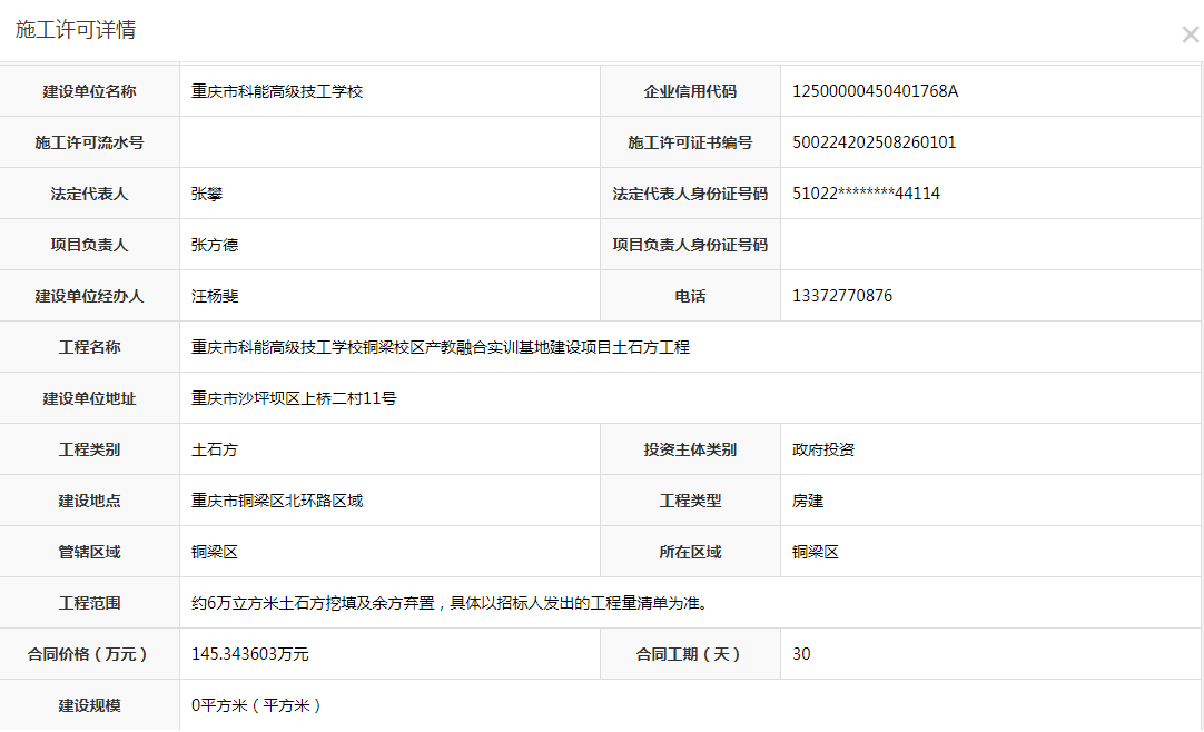 重庆市科能高级技工学校铜梁校区产教融合实训基地建设项目土石方工程施工许可