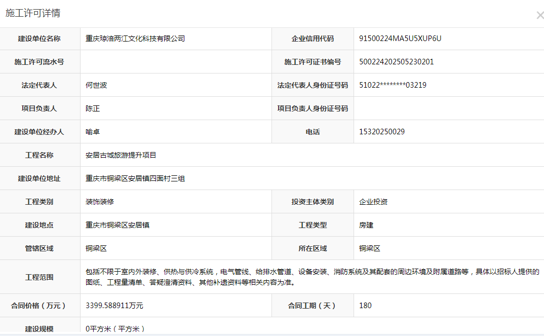 安居古城旅游提升项目施工许可