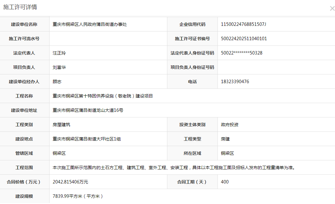 重庆市铜梁区第十特困供养设施(敬老院)建设项目施工许可