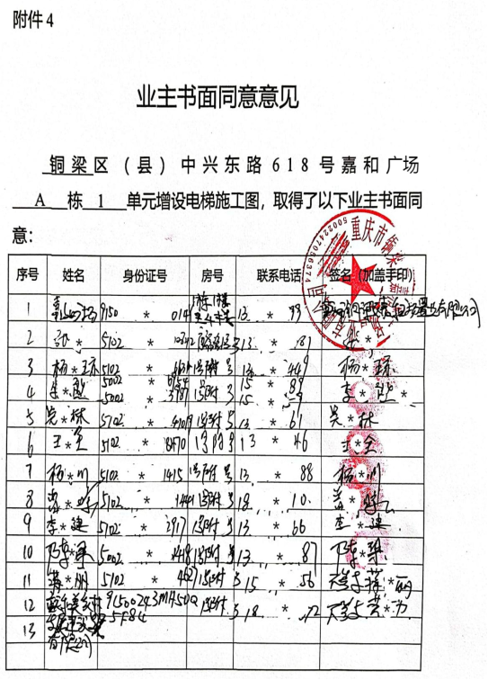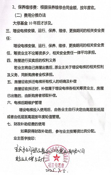 附件:1.书面申请、2.技术审查报告书、3.增设电梯示意图、4.业主书面同意意见、5.费用分担协议。