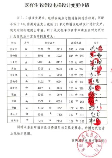 铜梁区东城街道塔山东街*号(金龙山花园)*单元共计16户业主,其中田*等12户业主向重庆市铜梁区人民政府东城街道办事处提出增设电梯变更申请。现将有关事宜公示如下: