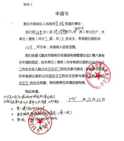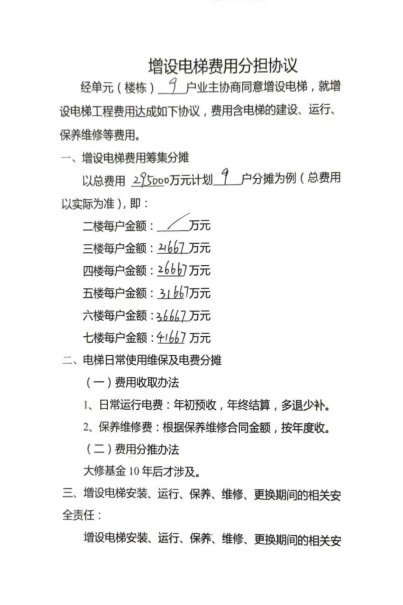 附件:1.书面申请;2.相关合格书;3.增设电梯示意图;4.业主书面同意意见。5.费用分担协议。