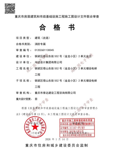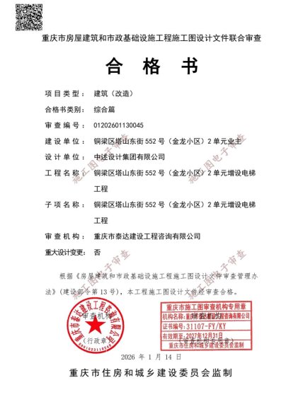二、公示内容:根据《重庆市既有住宅增设电梯管理办法》规定,现将书面申请、增设电梯示意图等内容向相关业主和利害关系人进行公示,公开征询意见。公示期为7日,2026年1月26日——2026年2月1日。同时在铜梁区政府网同步进行公示,公示链接:https://www.cqstl.gov.cn/。