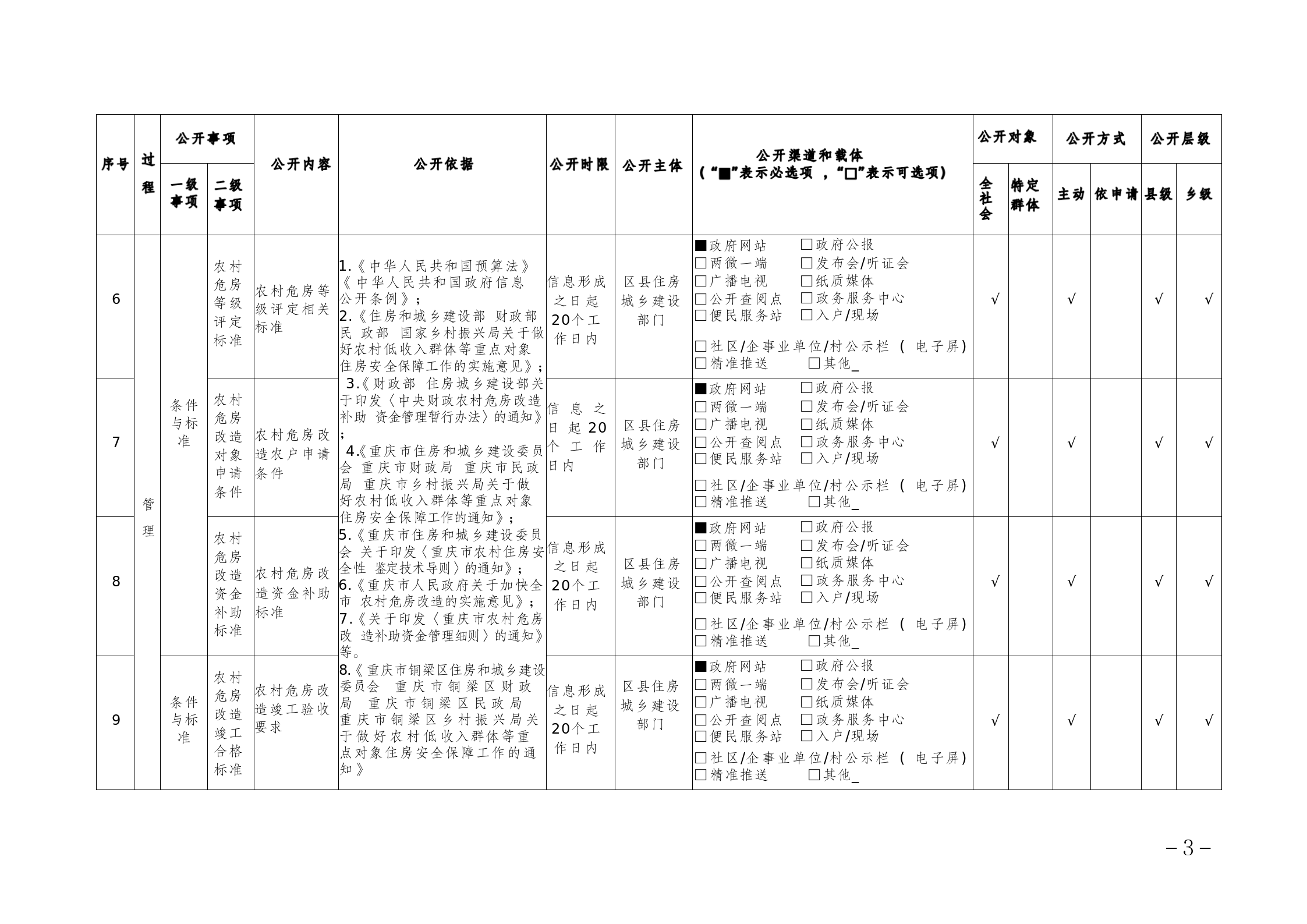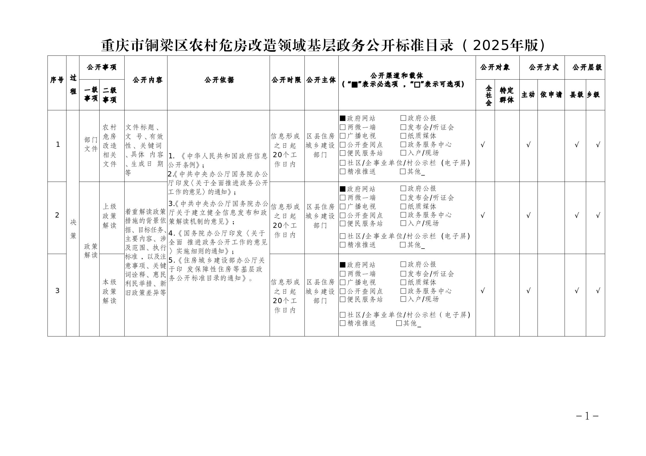 重庆市铜梁区农村危房改造领域基层政务公开标准目录 ( 2025年版)