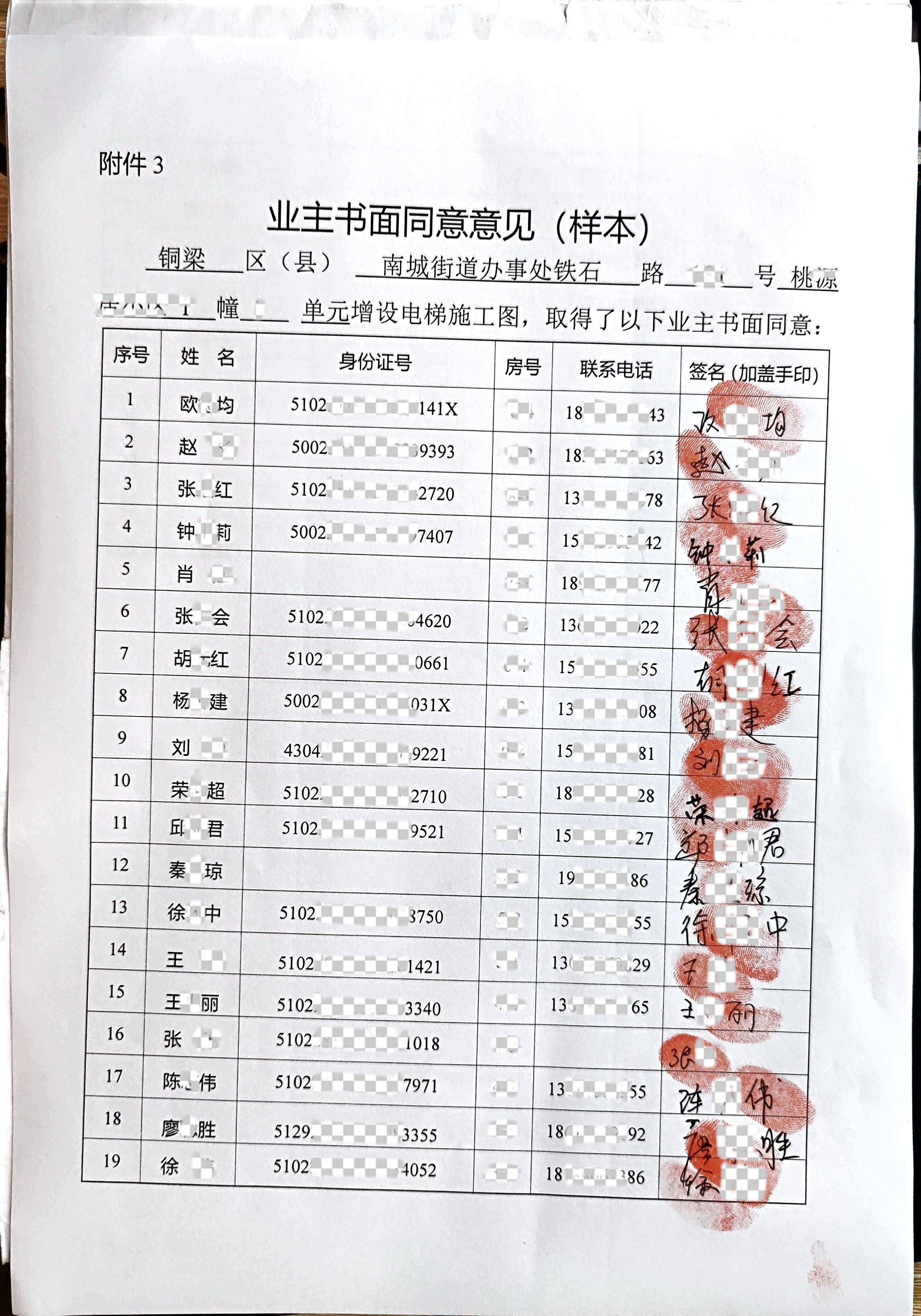 近日,铜梁区南城街道铁石路*号(桃源居)*栋*单元张*红等24位业主向铜梁区南城街道办事处提出申请增设电梯,现将铜梁区南城街道铁石路*号(桃源居)*栋*单元增设电梯项目相关情况公示如下: