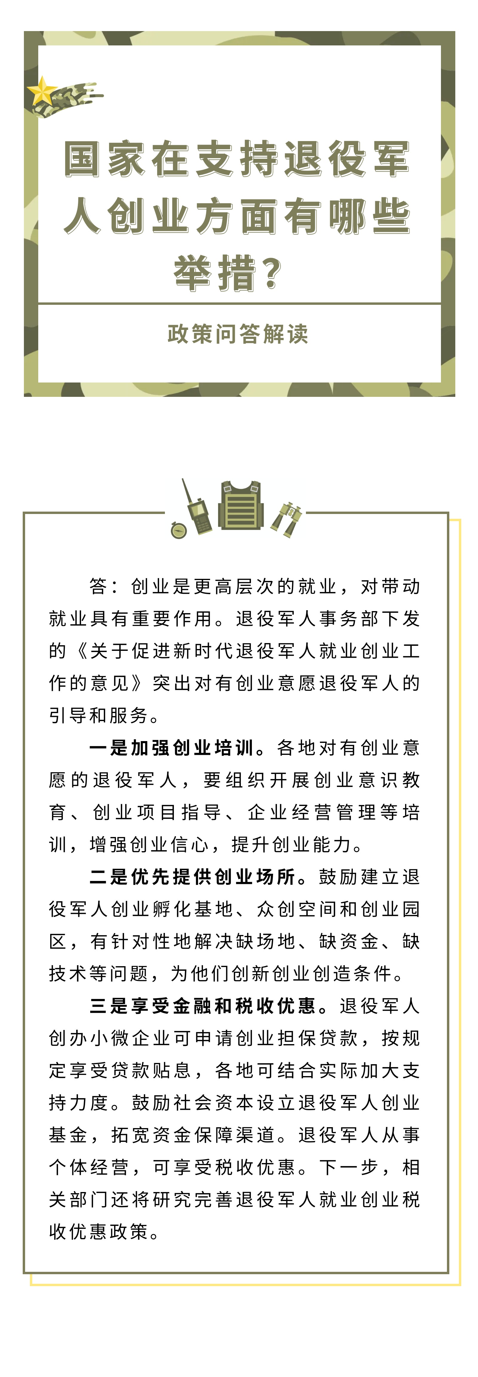【政策问答图解】国家在支持退役军人创业方面有哪些举措?