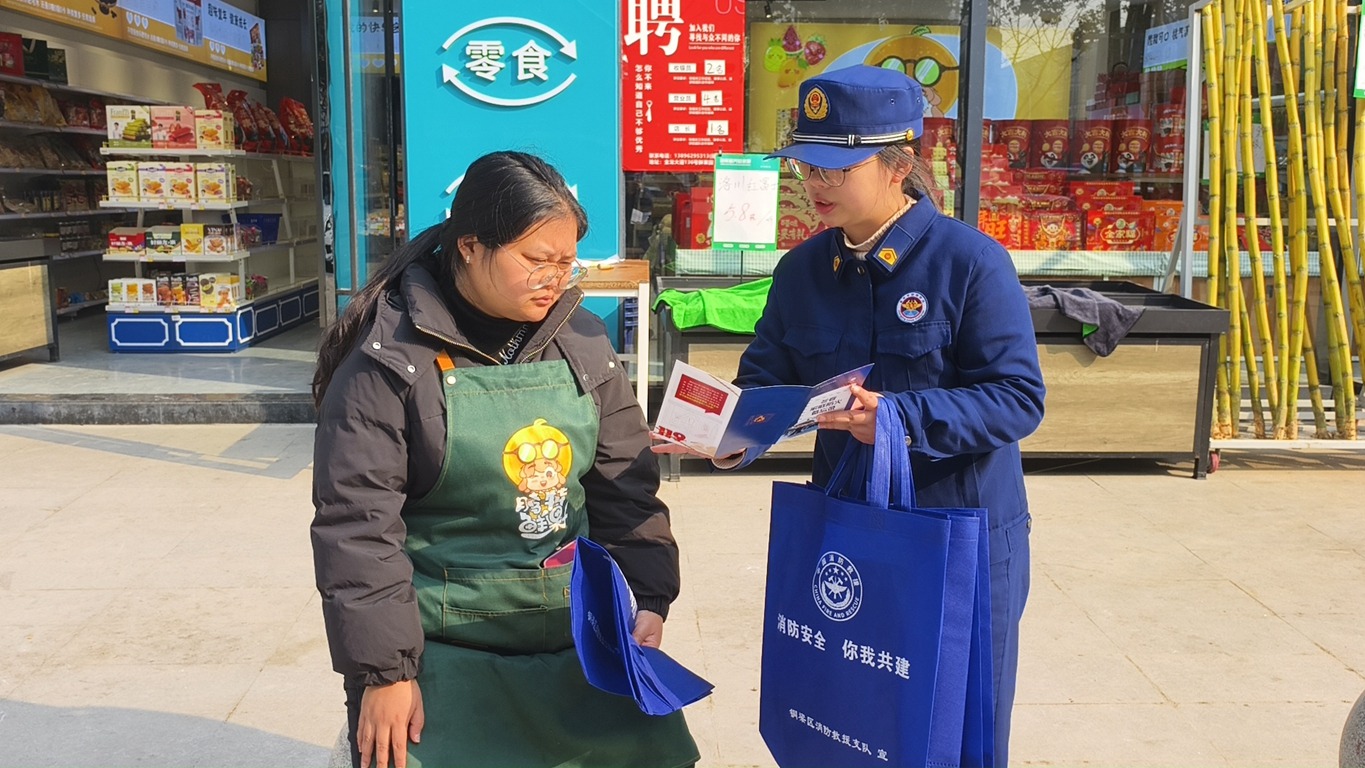 为切实筑牢人员密集场所、“三合一”场所及“九小场所”消防安全防线,有效防范化解火灾风险,坚决遏制“小火亡人”及群死群伤火灾事故发生,近日,铜梁消防宣传员走进辖区沿街商铺开展消防知识宣传活动。