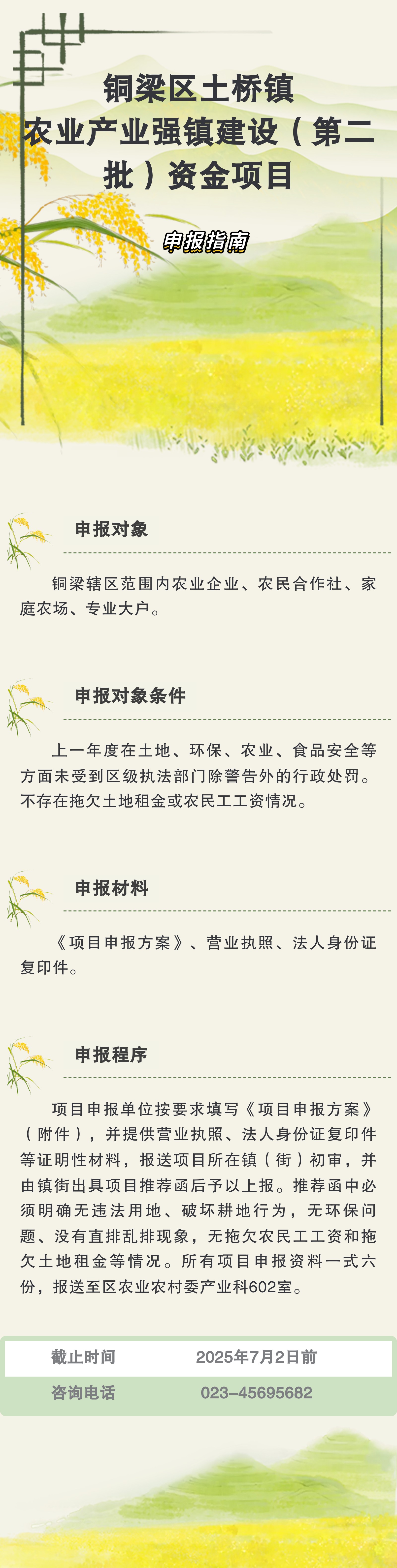 铜梁区土桥镇农业产业强镇建设(第二批)资金项目申报指南