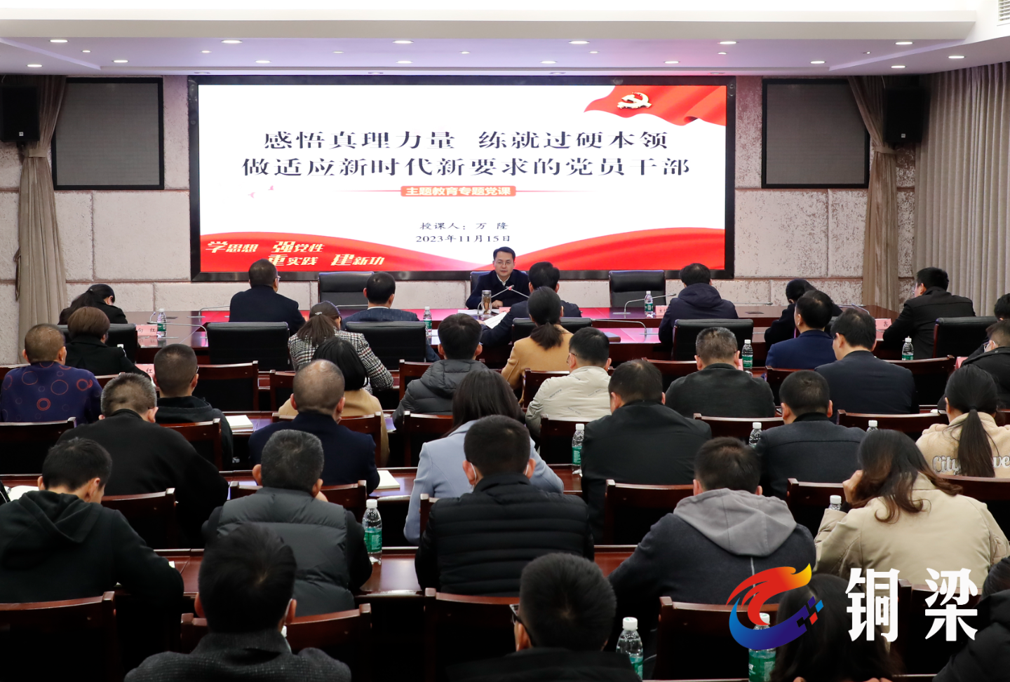 万隆结合自身学习感悟,紧密联系铜梁实际,以“感悟真理力量  练就过硬本领  做适应新时代新要求的党员干部”为主题,为现场人员作了一场全面系统深入的宣讲解读。