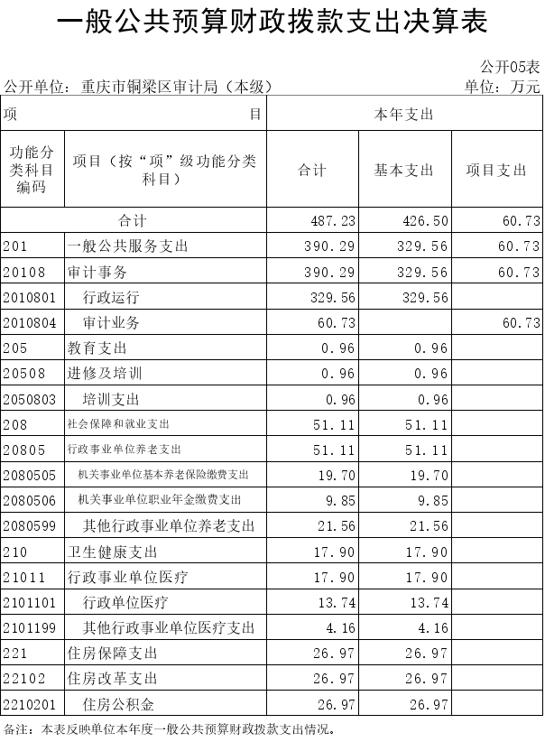 根据预算绩效管理要求,本单位共有1个二级项目,项目名称为铜梁审计(调查)专项经费,对该项目以填报目标自评表形式开展了绩效自评,涉及财政拨款项目支出资金60.73万元。从评价情况来看,项目立项较为规范、绩效目标明确、预算编制合理,项目实施的总体情况较好,基本完成年初设立的绩效目标。