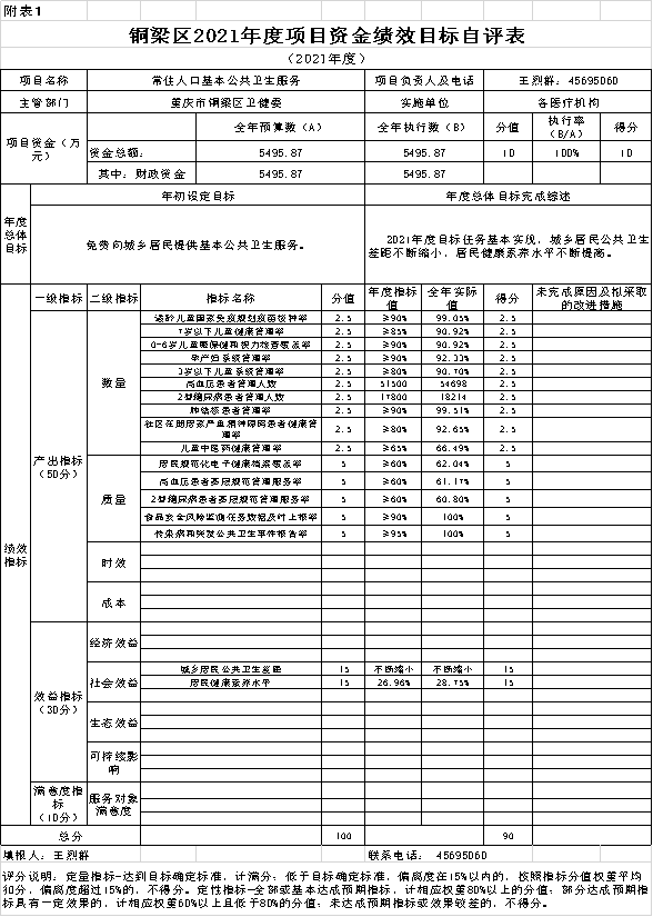 铜梁区2021年度项目资金绩效目标自评表(基本公共卫生服务项目).xls