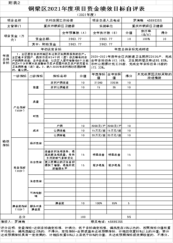 铜梁区2021年度项目资金绩效目标自评表(农村改厕工作经费项目).xls