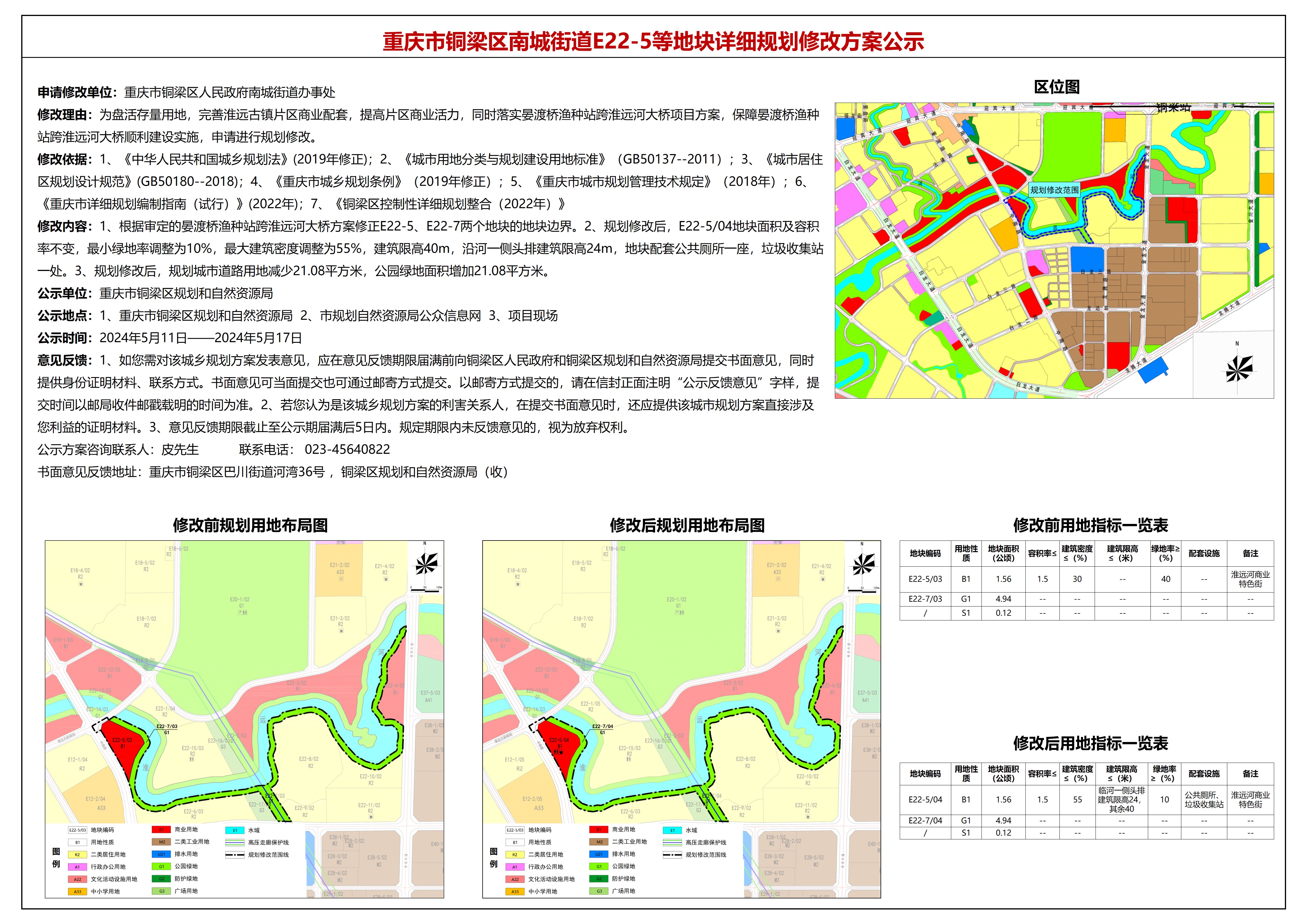 重庆市铜梁区南城街道E22-5等地块详细规划修改方案公示