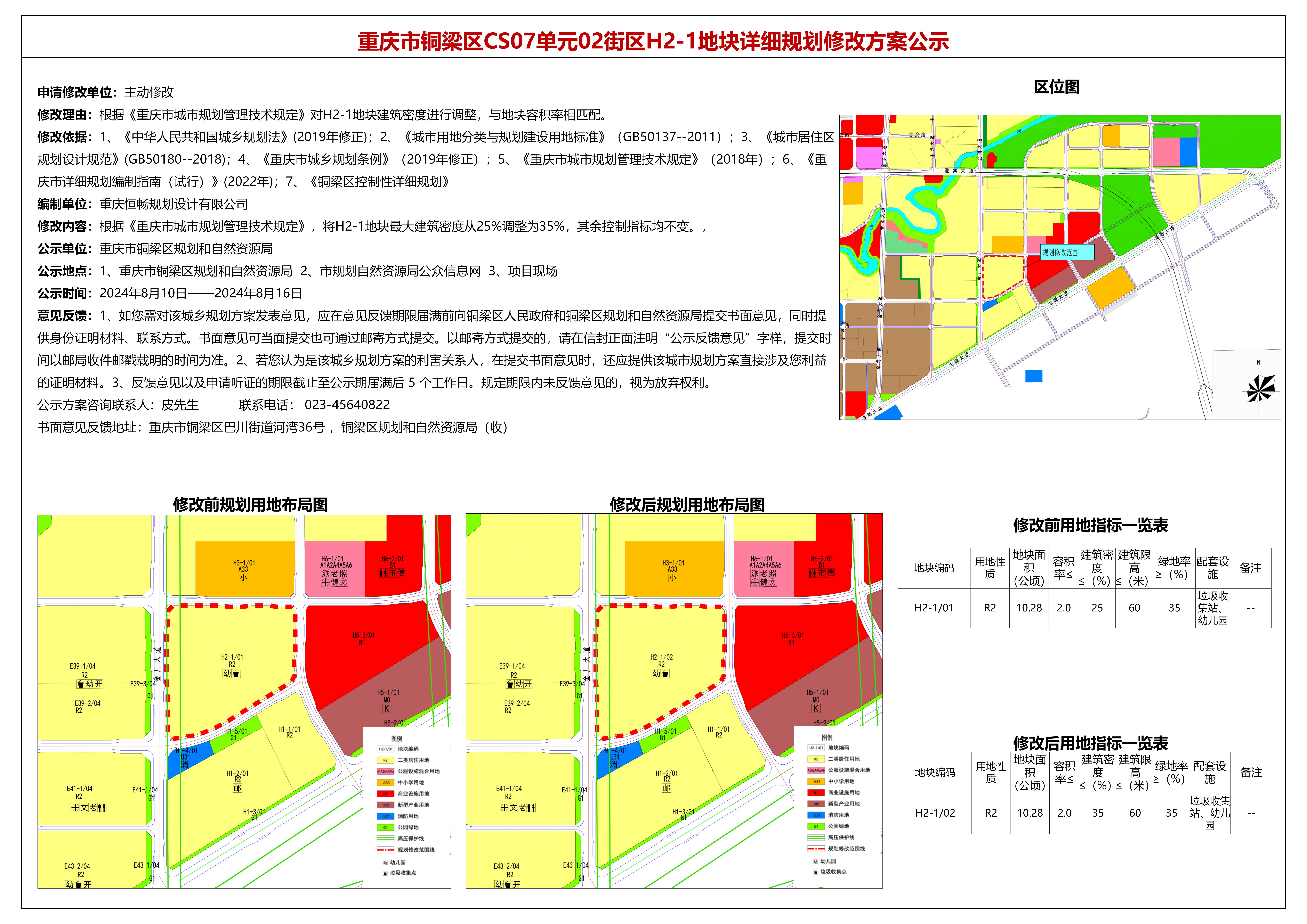 重庆市铜梁区CS07单元02街区H2-1地块详细规划修改方案公示
