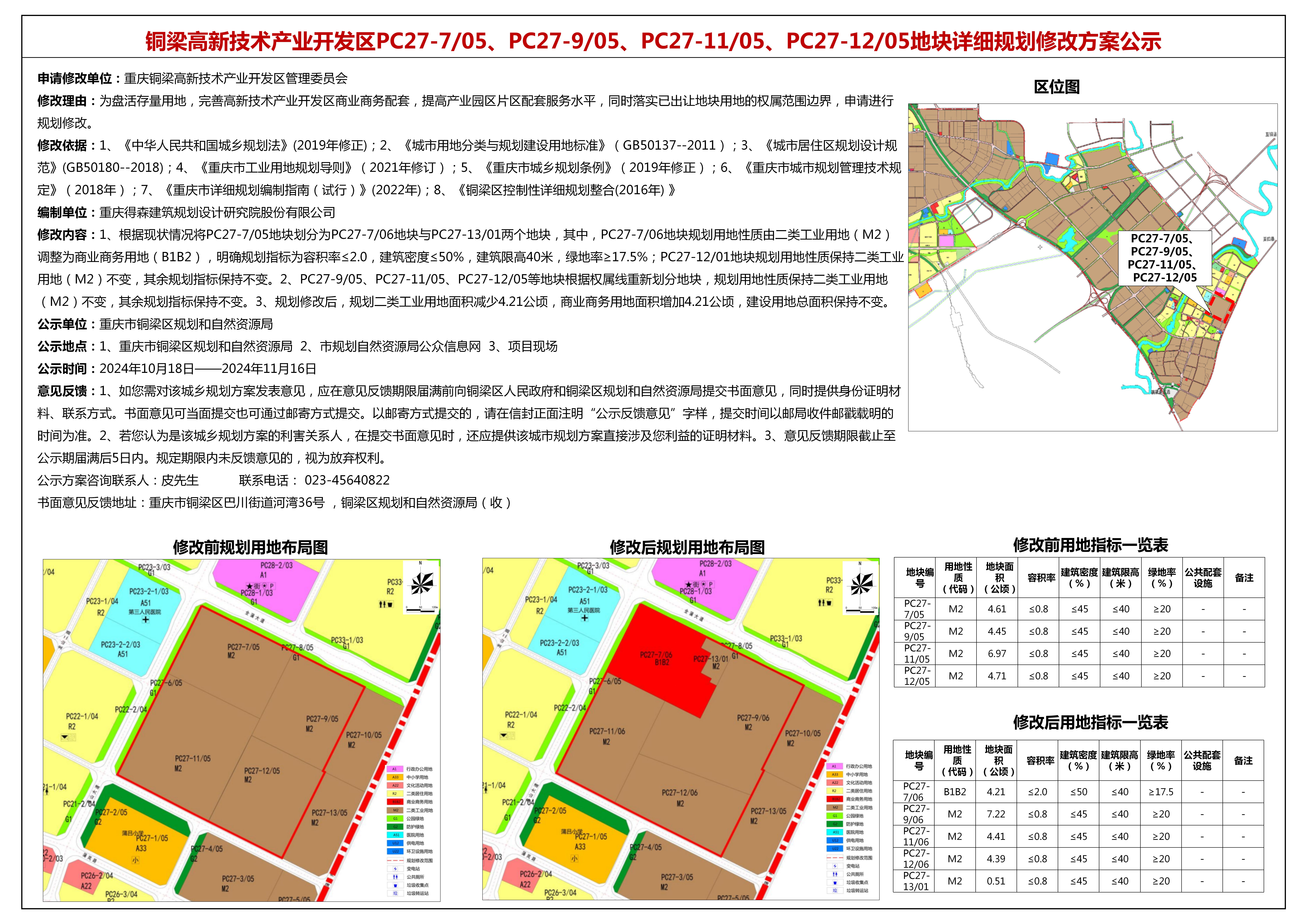 铜梁高新技术产业开发区PC27-7/05、PC27-11/05、PC27-12/05地块详细规划修改方案公示