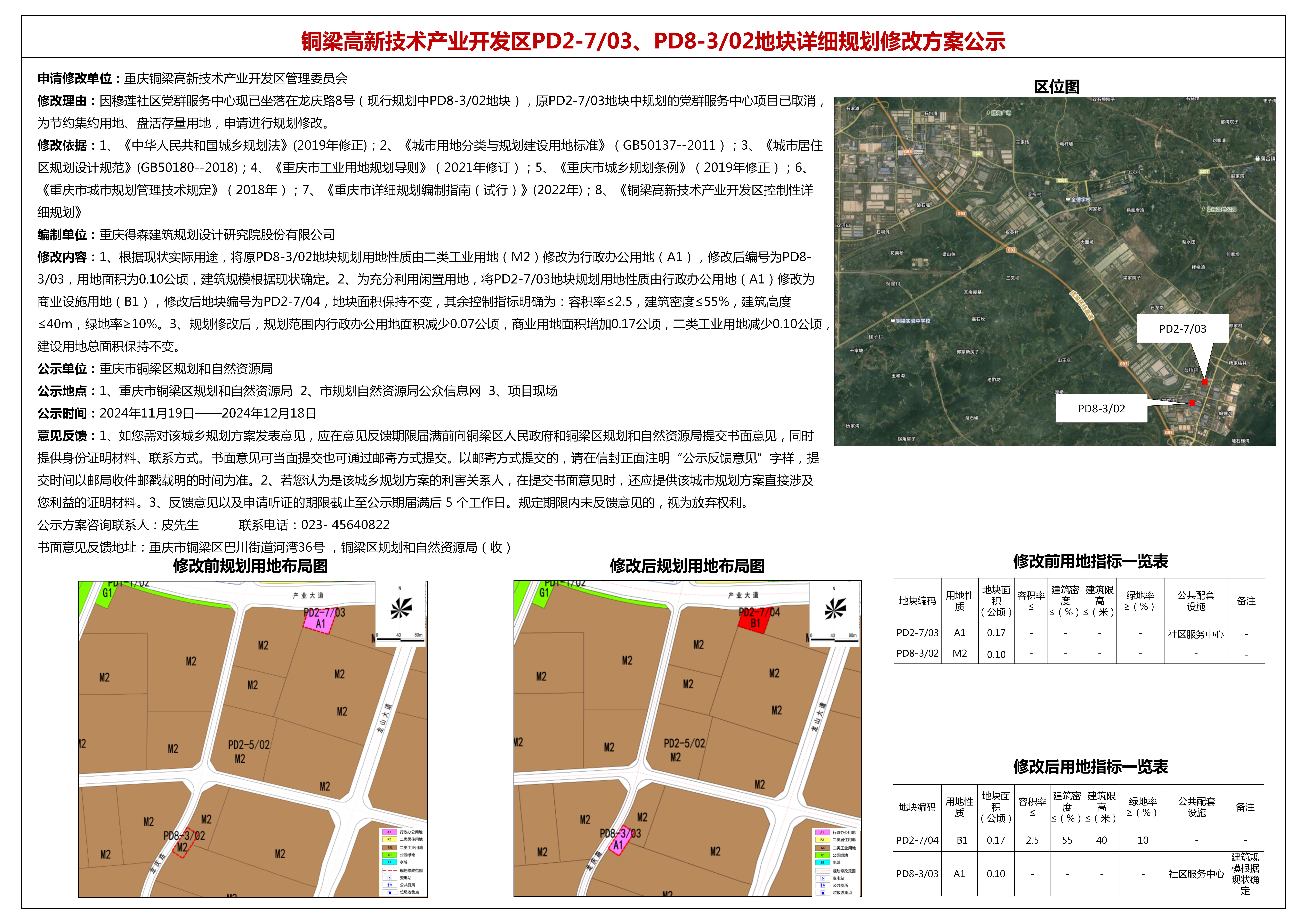 铜梁高新技术产业开发区PD2-7/03、PD8-3/02地块详细规划修改方案公示