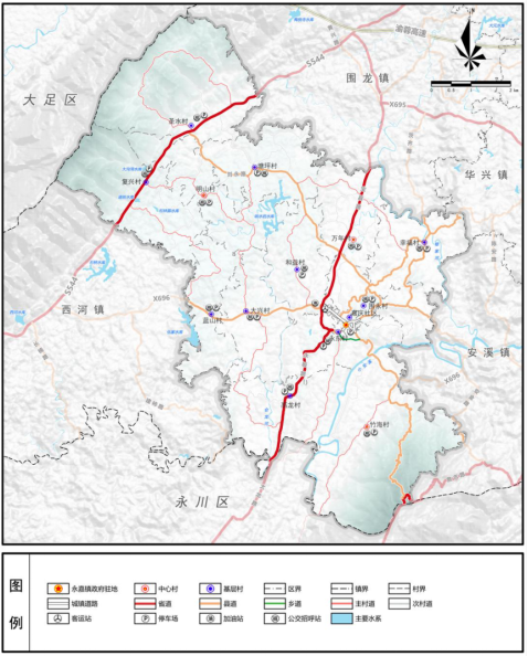 构建“两横三纵多联线”的镇域道路系统,全面提升铜永路、西安路、S546、刘永路及竹海路等级质量,实现“村村通、路路通”,完善客运站、社会停车场、公交招呼站等设施布点。