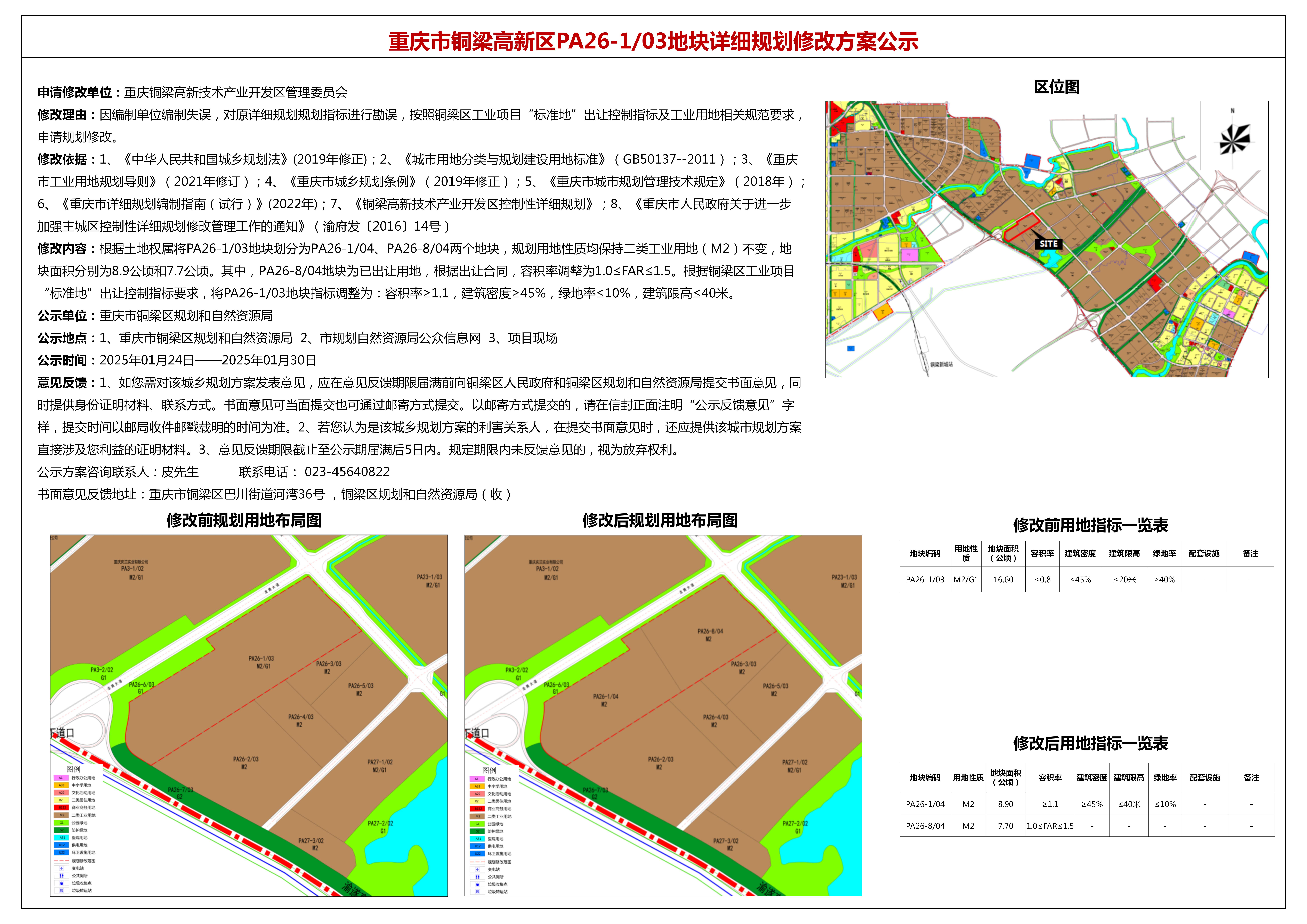 重庆市铜梁高新区PA26-1/03地块详细规划修改方案公示