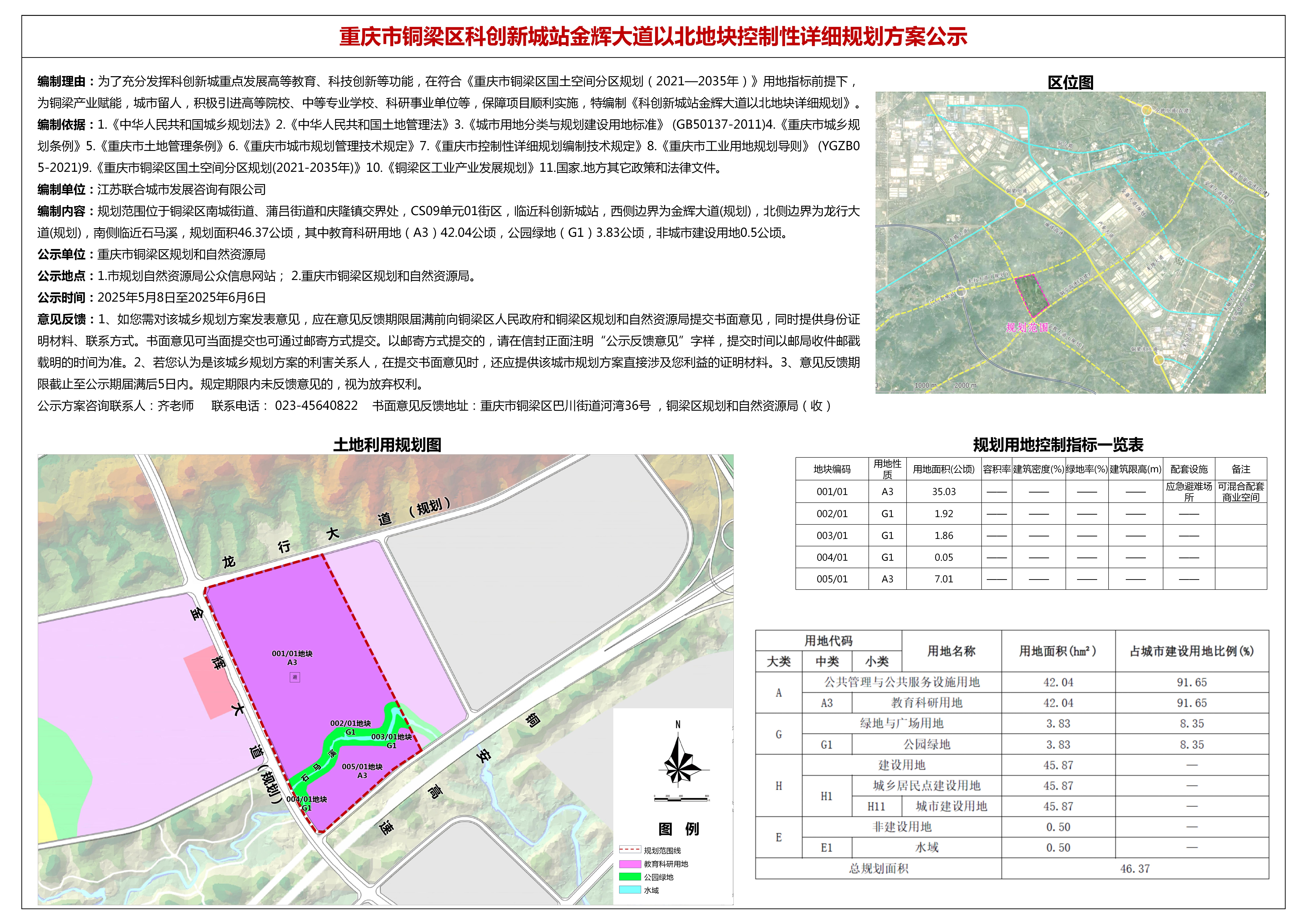 重庆市铜梁区科创新城站金辉大道以北地块控制性详细规划方案公示
