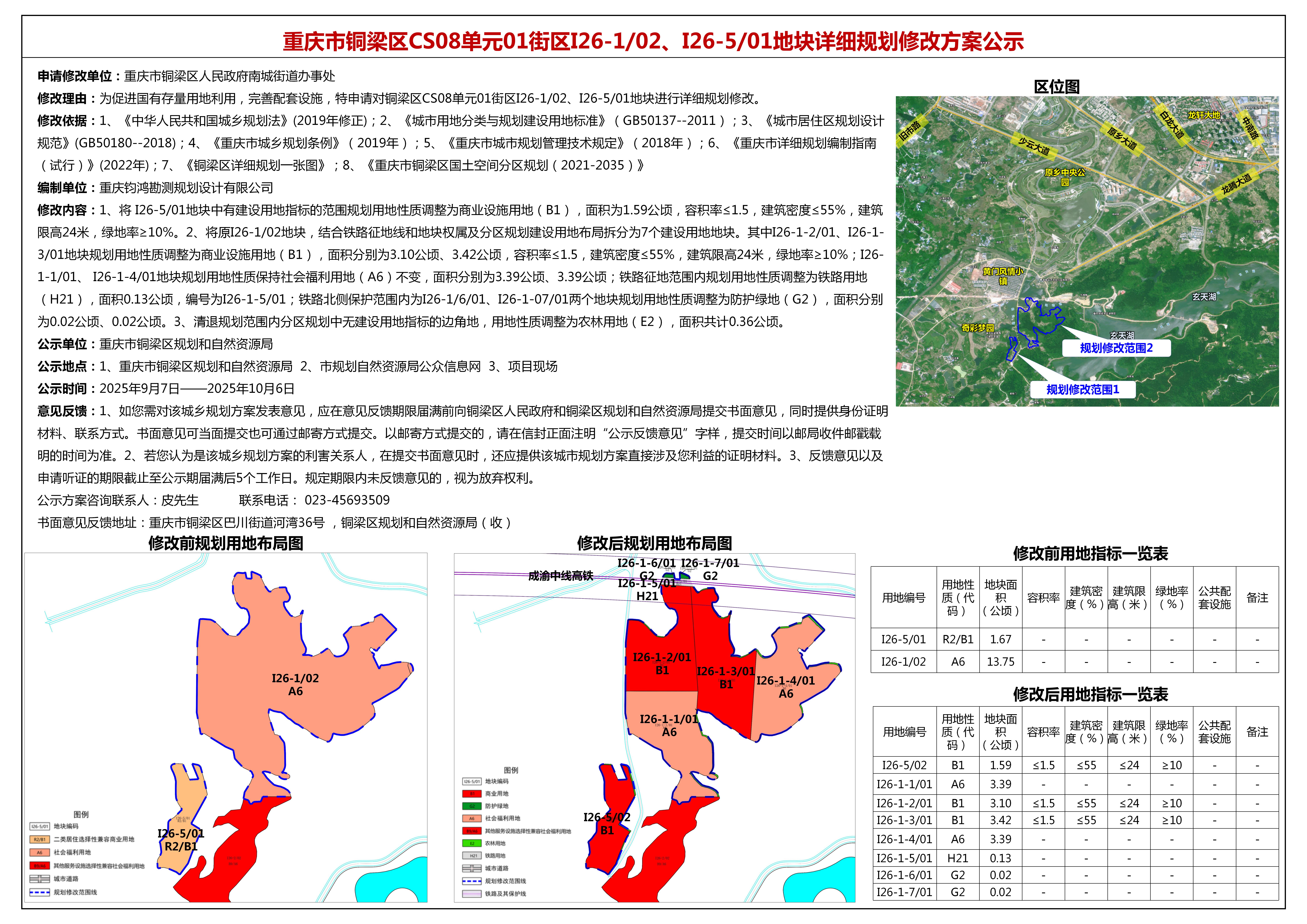 重庆市铜梁区CS08单元01街区I26-1/02、126-5/01地块详细规划修改方案公示