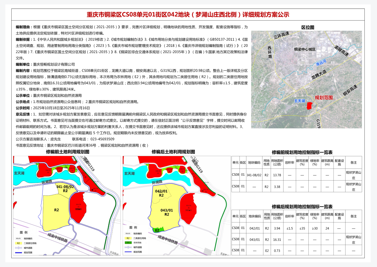 重庆市铜梁区CS08单元01街区042地块(梦湖山庄西北侧)详细规划方案公示