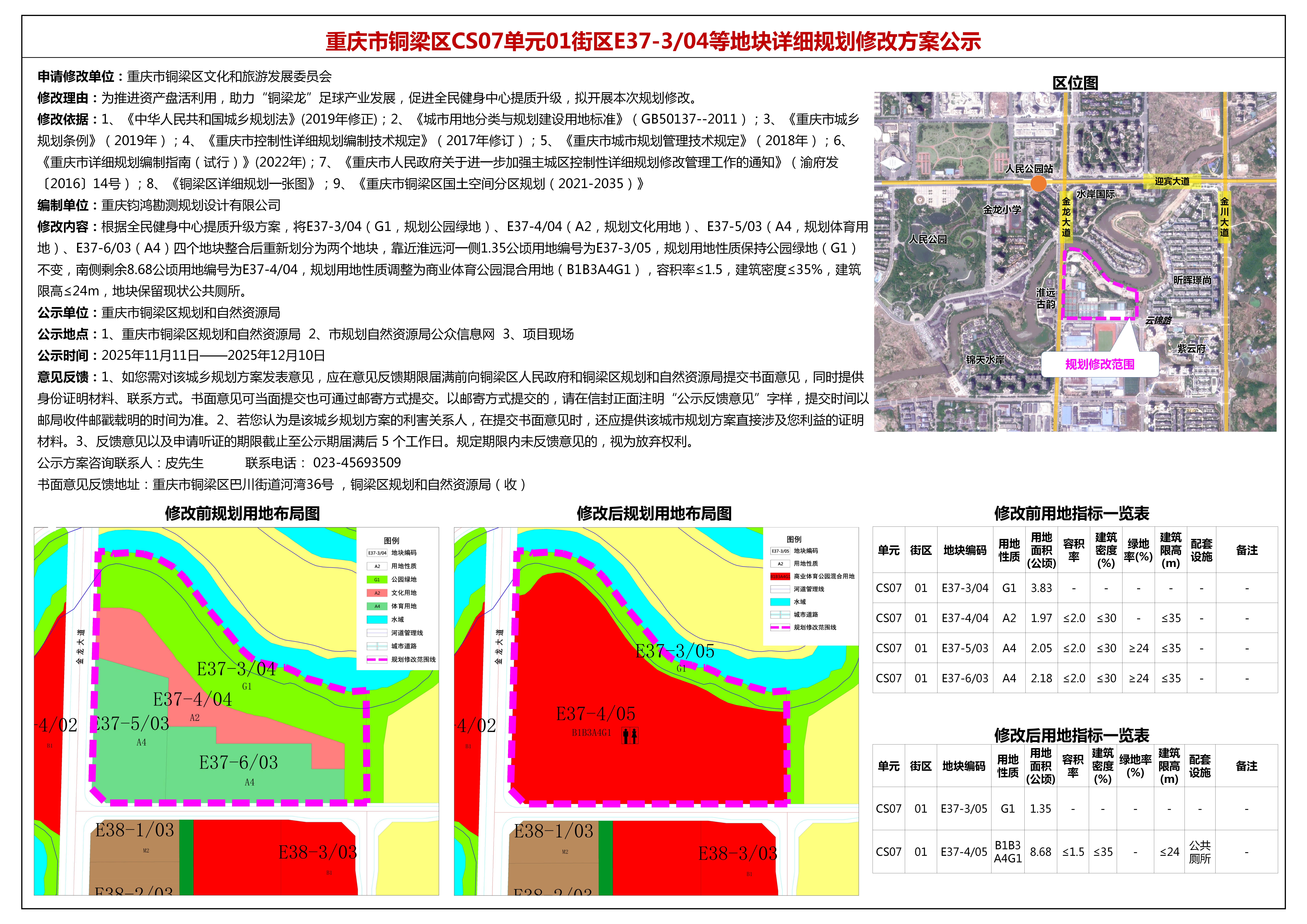重庆市铜梁区CS07单元01街区E37-3/04等地块详细规划修改方案公示