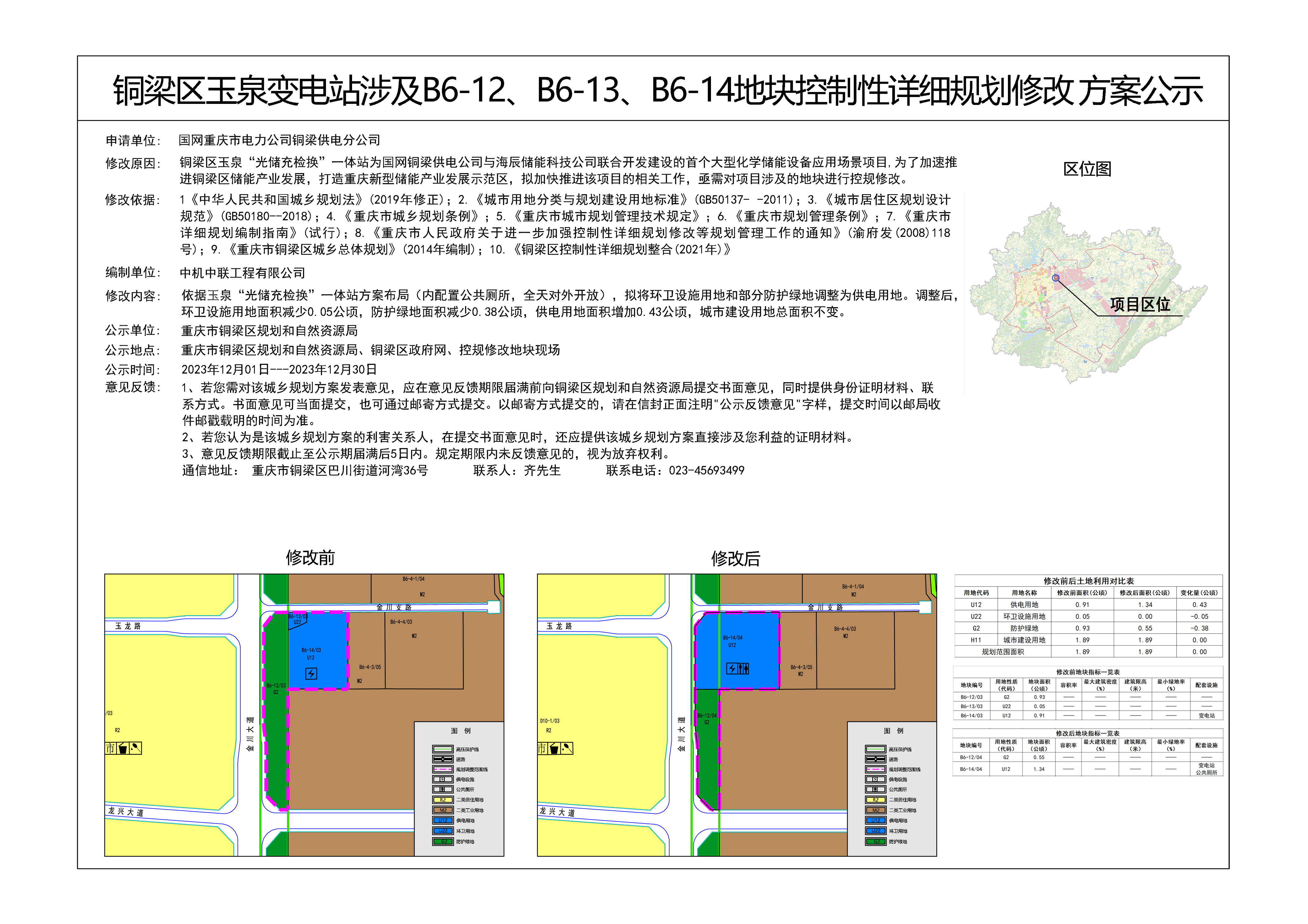 铜梁区玉泉变电站涉及B6-12、B6-13、B6-14地块控制性详细规划修改方案公示