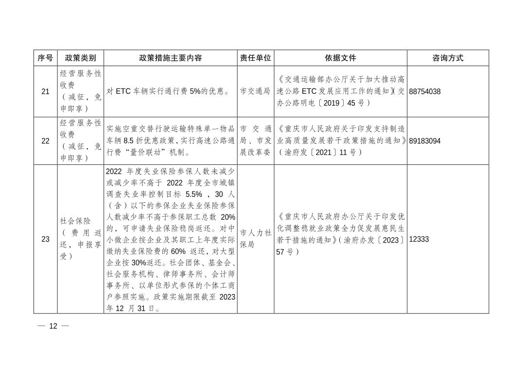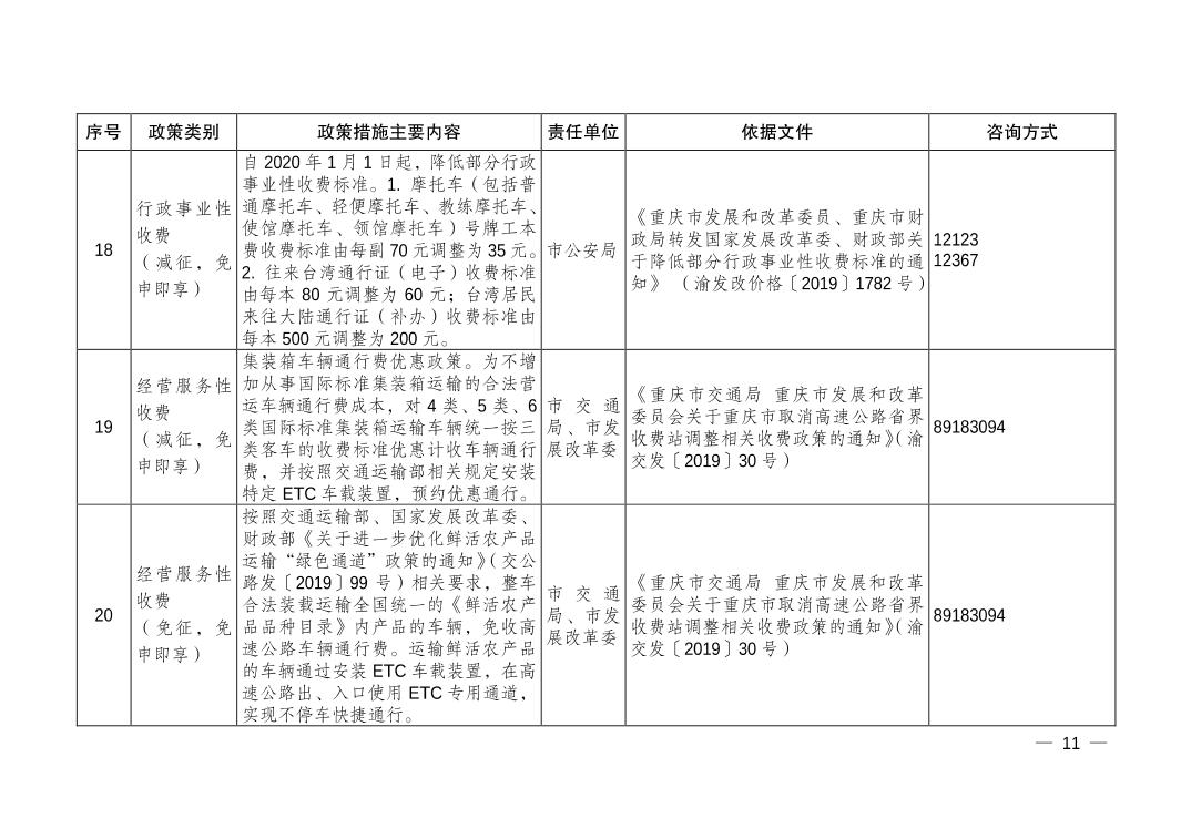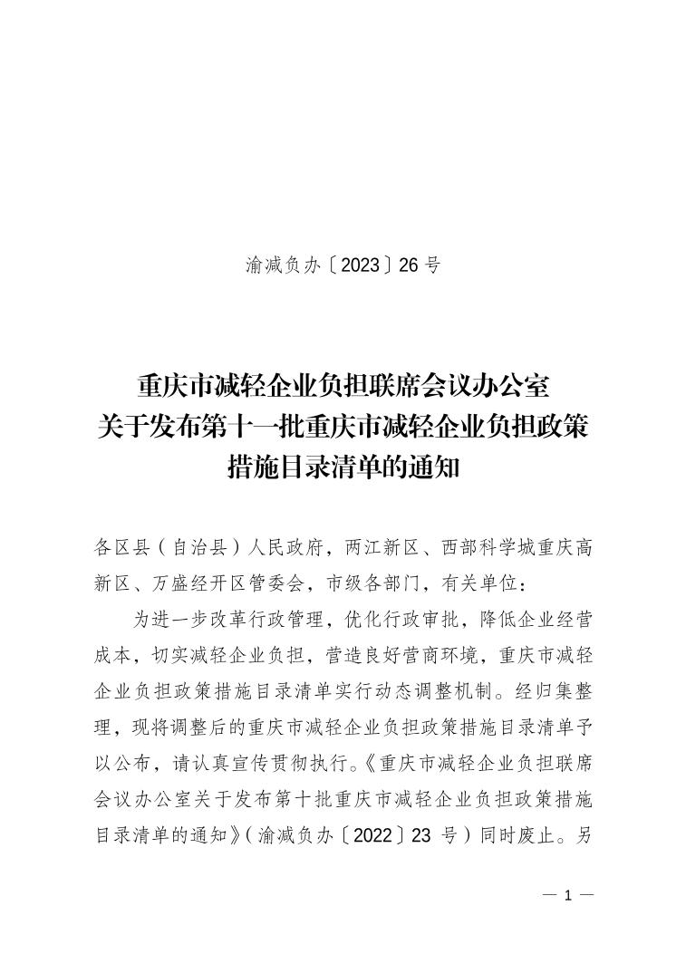 重庆市减轻企业负担联席会议办公室关于发布第十一批重庆市减轻企业负担政策措施目录清单的通知