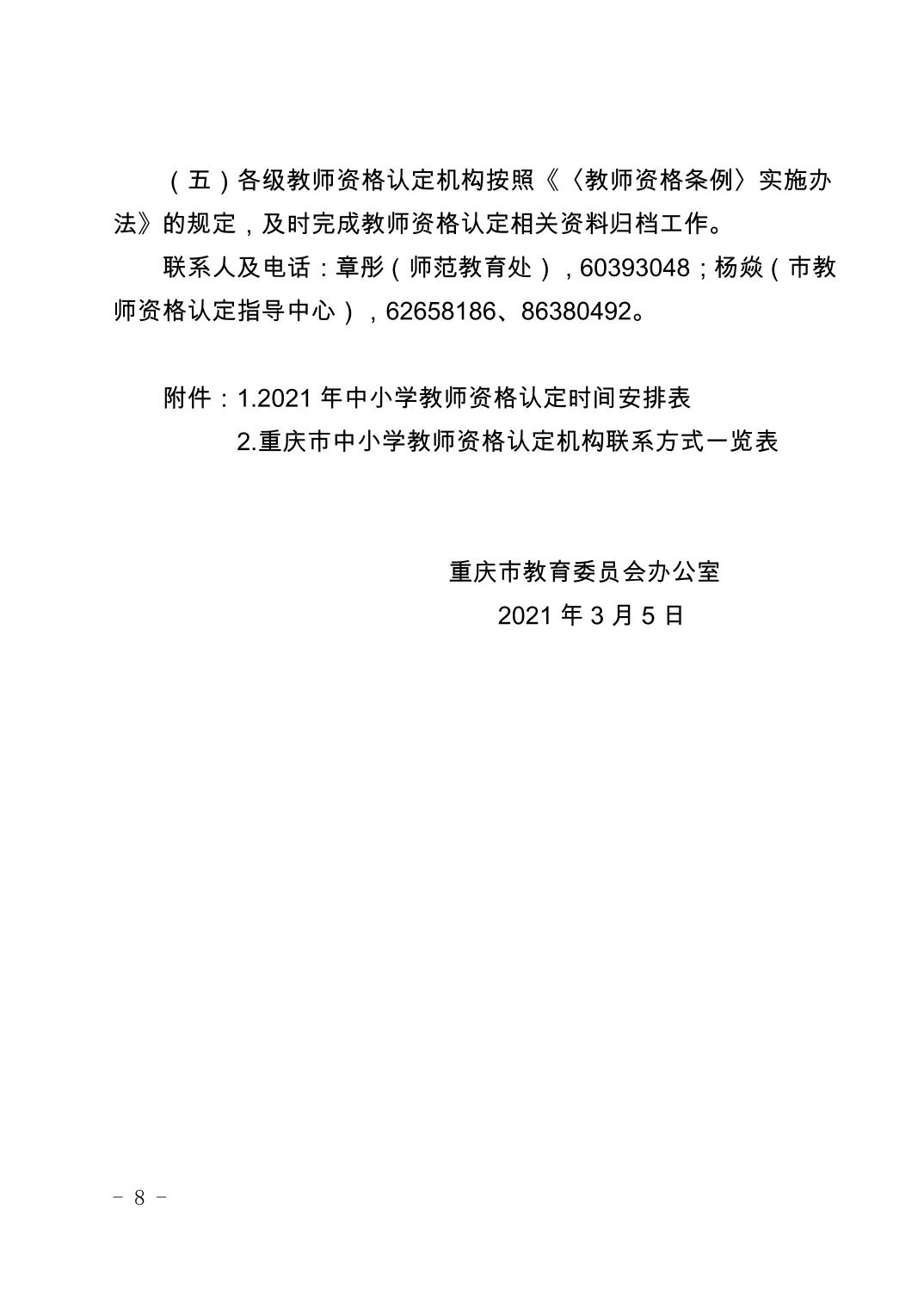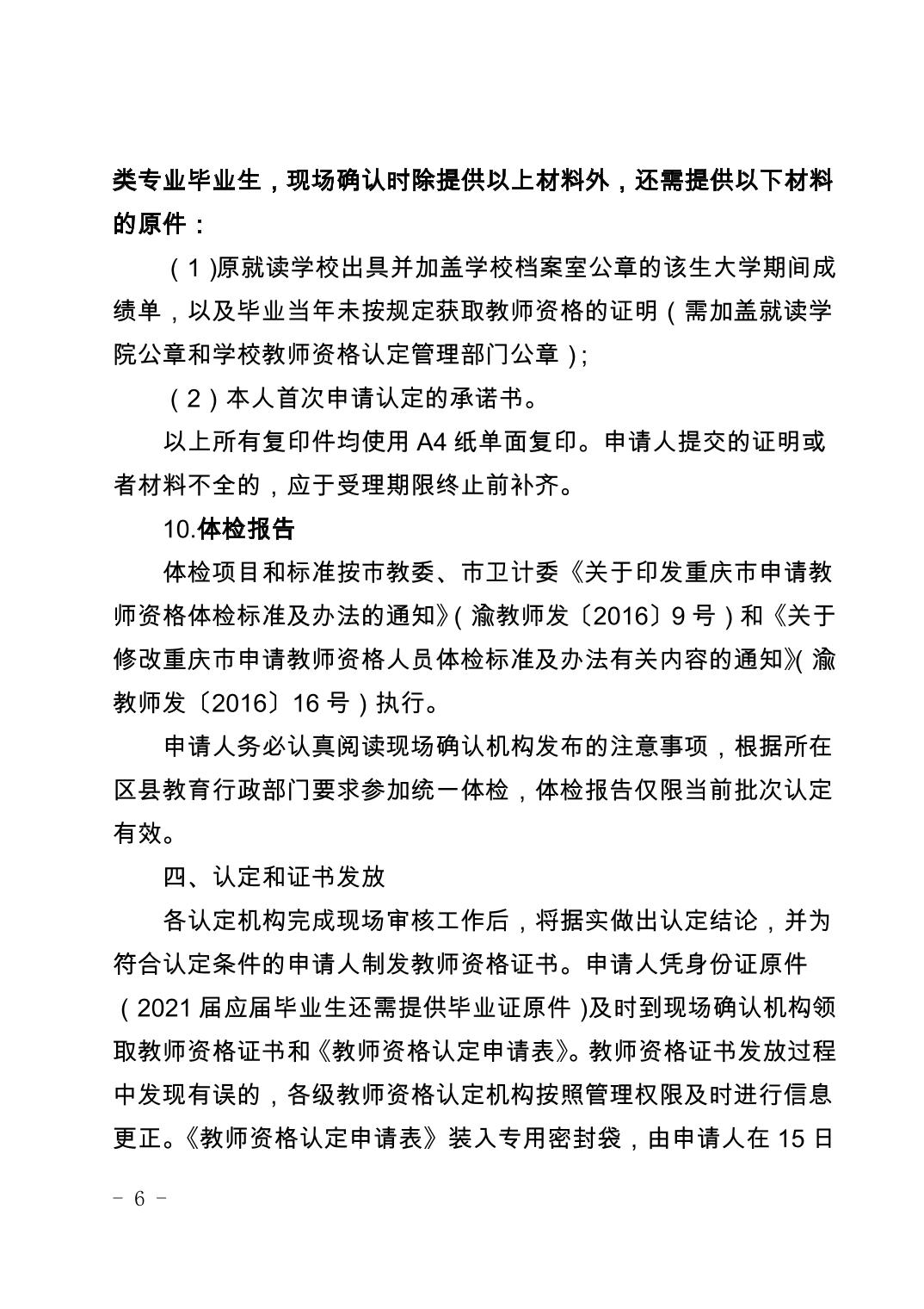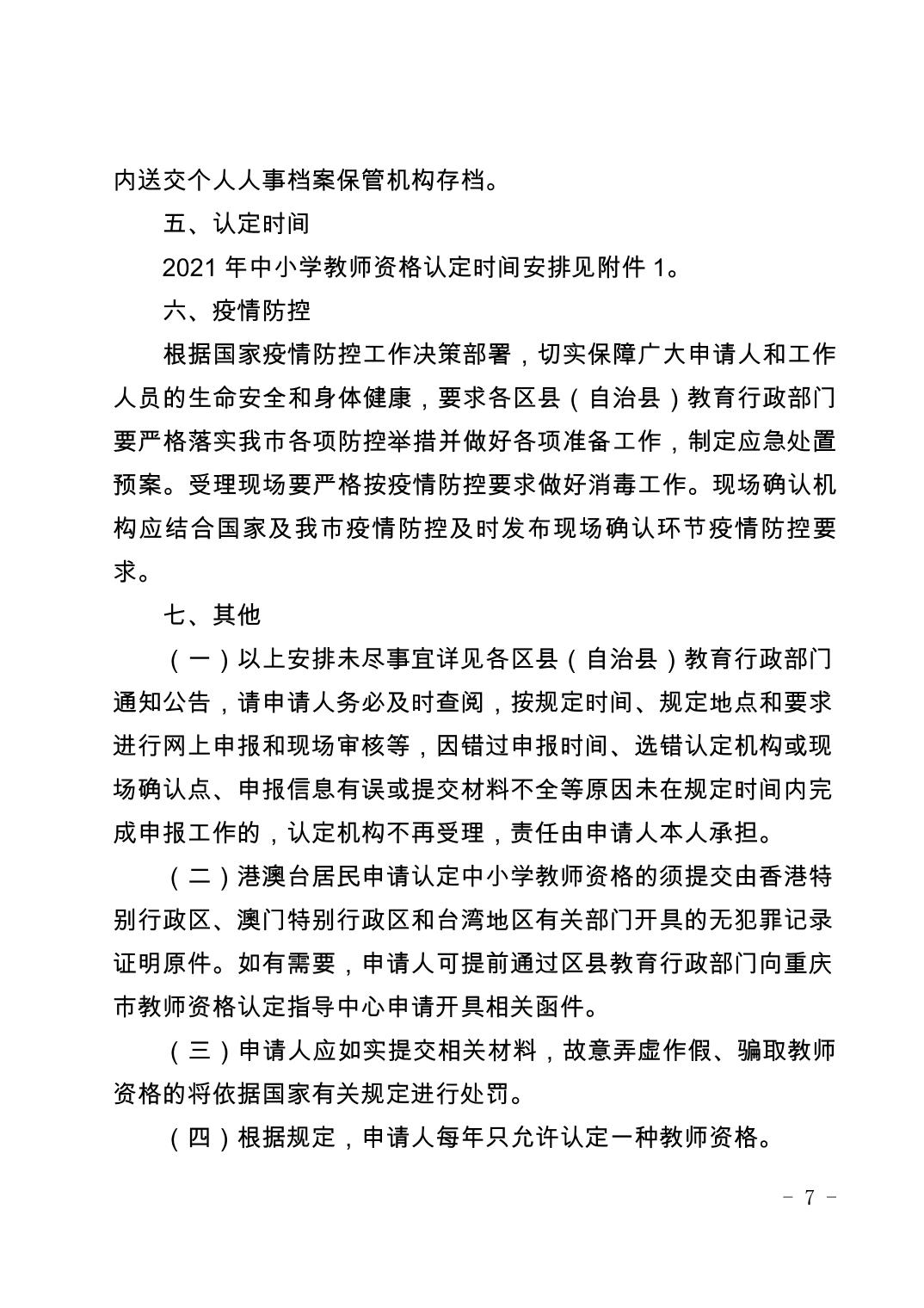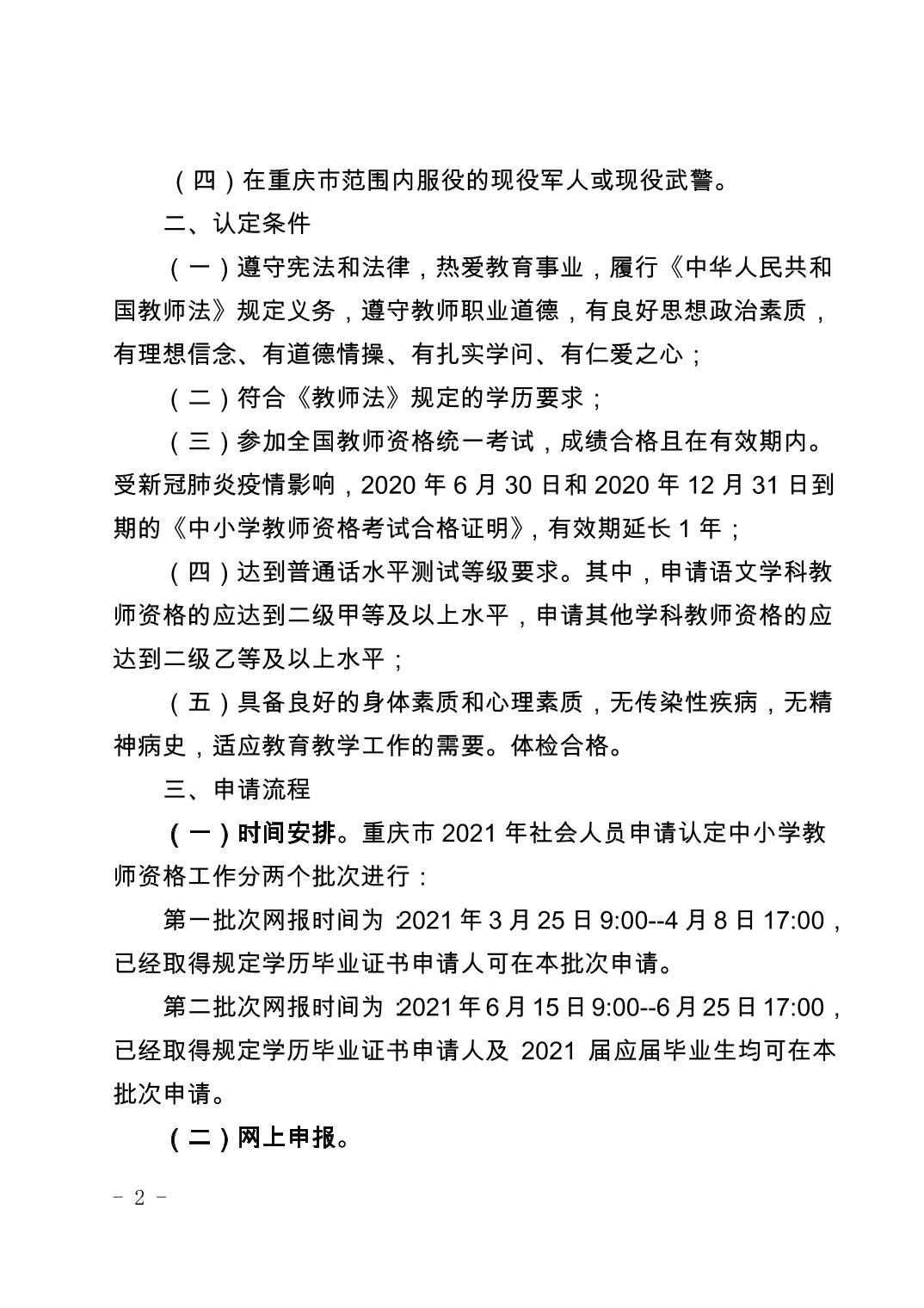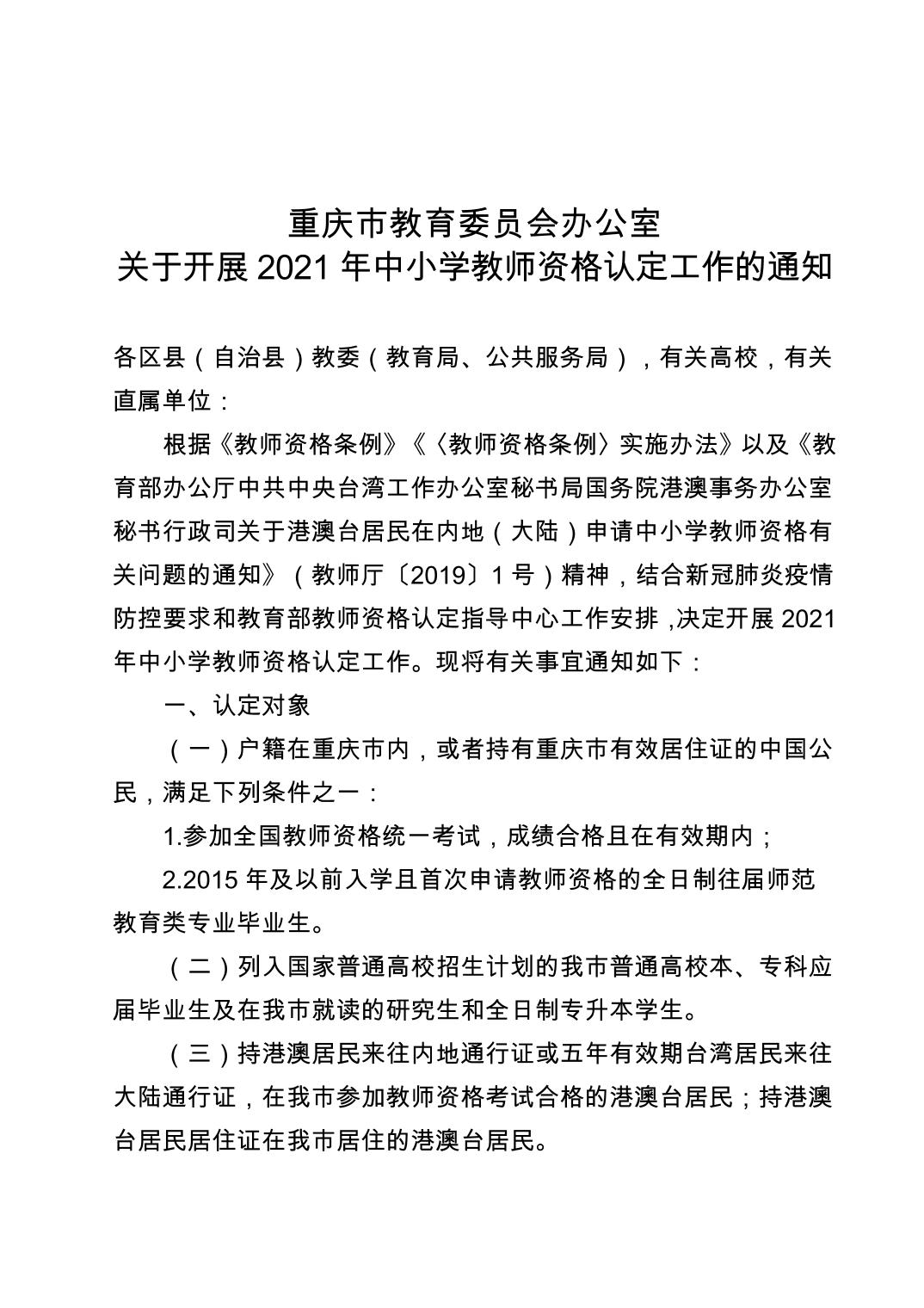 重庆市教育委员会办公室关于开展2021年中小学教师资格认定工作的通知