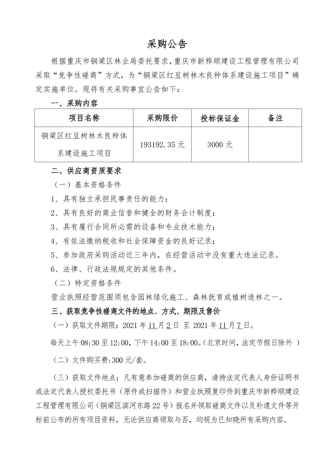 铜梁区红豆树林木良种体系建设施工项目采购公告