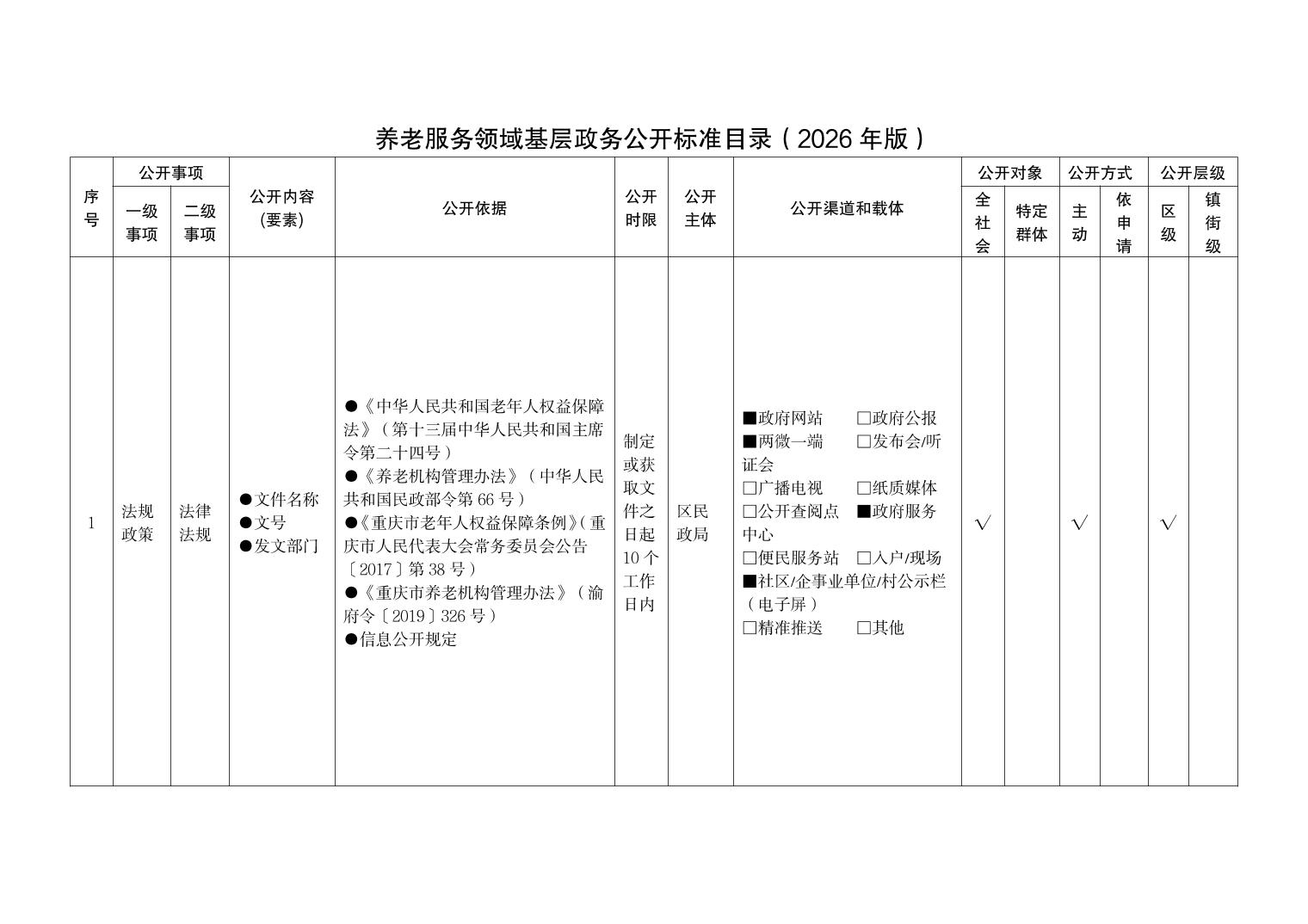 养老服务领域基层政务公开标准目录(2026年版)