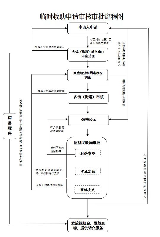 对遭遇其他特殊困难申请临时救助的,街镇应按程序进行审核,形成审核意见后,上报区民政局审定实施救助。
