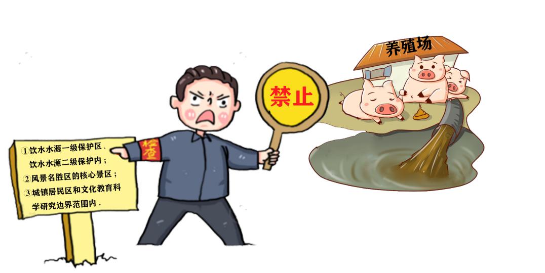 ①饮水水源一级保护区内禁止建设养殖场;饮用水水源二级保护区内禁止建设有污染物排放的养殖场。