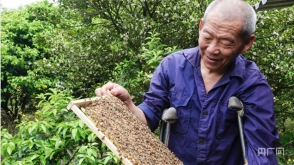 2019年,在铜梁区残联和当地政府的关心帮助下,吴云国开始养殖蜜蜂,区残联不仅免费为他提供养蜂技术指导,还为他送种蜂、硬化便道、搭建雨棚等。如今,吴云国已经养殖了50多桶蜜蜂,还在长寿和潼南建起养殖基地,年纯收入达十多万元。